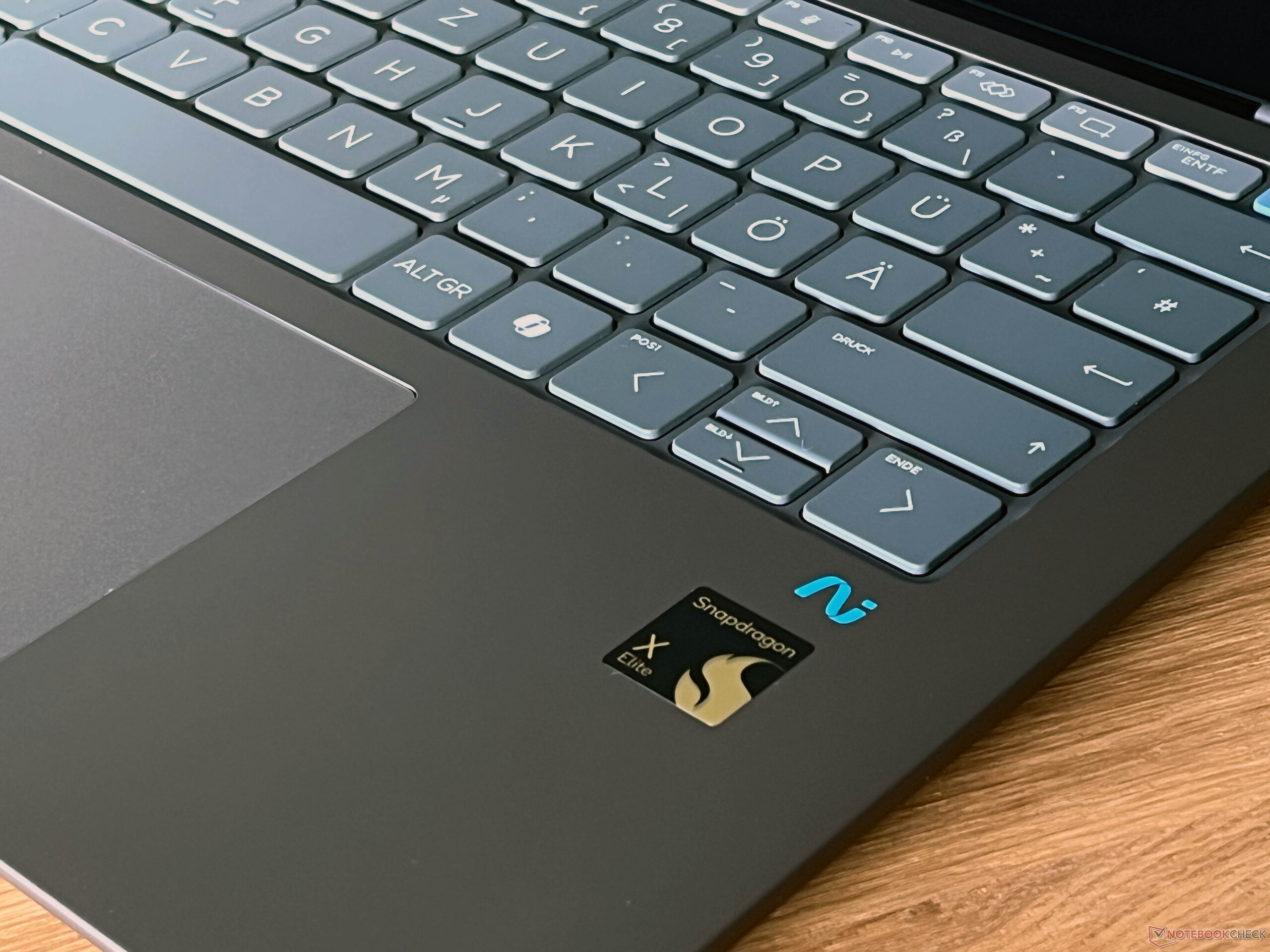 Bei der Ausstattung ist der Eindruck gemischt. Nur einer der beiden USB-C-Anschlüsse unterstützt den USB-4.0-Standard, zumindest gibt es auf der rechten Seite aber noch einen regulären USB-A-Anschluss. Zudem kommt nicht das Wi-Fi-7-Modul FastConnect 7800 zum Einsatz, das wir von allen anderen Snapdragon-Laptops kennen, sondern nur die abgespeckte Wi-Fi-6E-Variante (FastConnect 6900). In der Praxis sind die Transferraten aber trotzdem ordentlich. Als Webcam (inklusive mechanischer Blende) dient ein 5-MP-Sensor und die Bildqualität ist sehr ordentlich. Die Studio-Effekte von Windows werden unterstützt, genauso wie die Gesichtserkennung via Windows Hello.