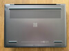 Das OmniBook X AI 14 ist ein schlanker 14-Zoll-Laptop in einem dunklen Silber. Das Design ist simpel, aber gefällig und die sandgestrahlten, eloxierten Oberflächen sind sehr unauffällig für Fingerabdrücke. Mit einer Bauhöhe von 14,3 mm gehört es zu den dünneren Modellen, lediglich das Samsung Galaxy Book4 Edge ist noch einmal spürbar flacher. Bei der Stabilität sind wir nicht vollkommen zufrieden, denn die Baseunit lässt sich sichtbar verwinden, was auch mit Knarzgeräuschen quittiert wird. Die Stabilität des Deckels ist ordentlich und die Scharniere sind stramm, es gibt aber dennoch etwas Nachwippen. Der maximale Öffnungswinkel liegt bei rund 135 Grad. Die unter Abdeckung lässt sich leicht abnehmen und man erhält Zugang zu den Lüftern, der M.2-2280-SSD und auch dem WLAN-Modul.