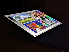 Das OmniBook X Flip 16 verwendet einen ähnlichen 1.800p-120-Hz-Samsung-OLED-Touchscreen wie das Galaxy Book5 Pro 360 oder HP Spectre x360 16. Es bietet eine höhere native Auflösung als die Mini-LED- oder IPS-Panels des Dell Plus 16 2-in-1 oder des MSI Summit A16 AI Plus. Die maximale Helligkeit erreicht 561 Nits im HDR-Modus, um HDR500 zu unterstützen, ist aber ansonsten auf 381 Nits im SDR-Modus begrenzt.
