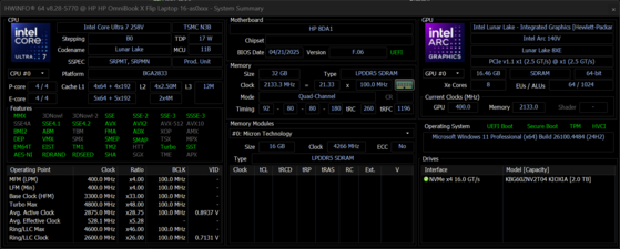 | HP OmniBook X Flip 16 Arc 140V, Core Ultra 7 258V | Dell 16 Plus 2-in-1 Arc 140V, Core Ultra 7 258V | Lenovo Yoga 7 2-in-1 16ILL10 Arc 140V, Core Ultra 7 256V, WD PC SN7100S SDFPMSL-512G-1101 | Samsung Galaxy Book5 Pro 360 Arc 130V, Core Ultra 5 226V, Samsung PM9B1 512GB MZVL4512HBLU | MSI Summit A16 AI Plus A3HMTG Radeon 880M, Ryzen AI 9 365, Samsung PM9C1 MZVL81T0HELB-00BTW | HP Spectre x360 16 RTX 4050 GeForce RTX 4050 Laptop GPU, Ultra 7 155H, SK hynix PC801 HFS001TEJ9X101N | |