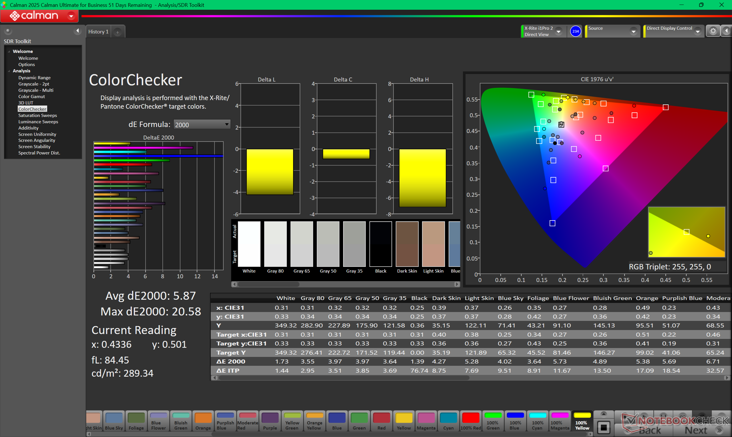 ΔE ColorChecker Calman: 5.87 | ∀{0.5-29.43 Ø4.76}