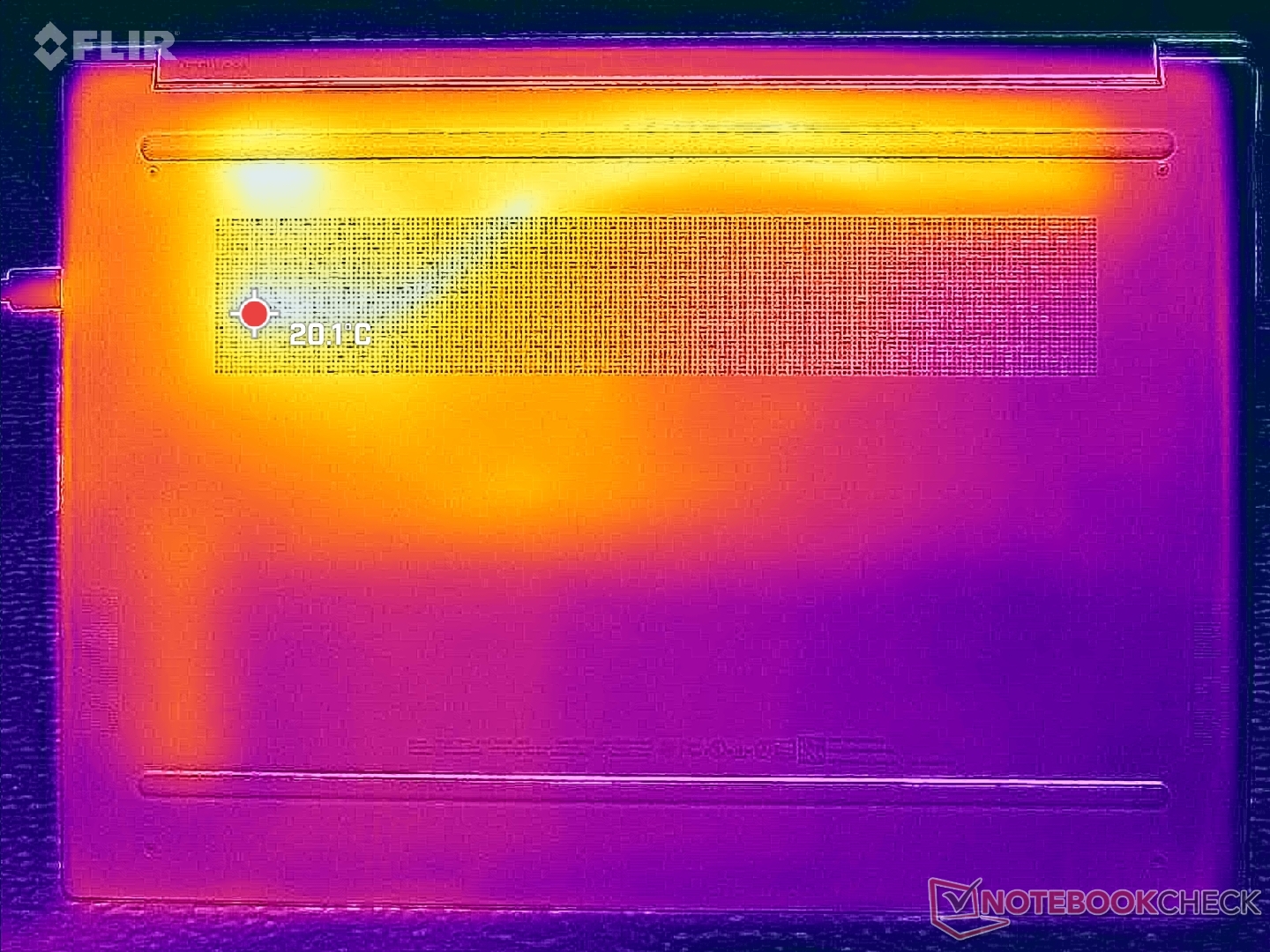 (+) Die Handballen und der Touchpad-Bereich sind mit gemessenen 20.8 °C kühler als die typische Hauttemperatur und fühlen sich dadurch kühl an.