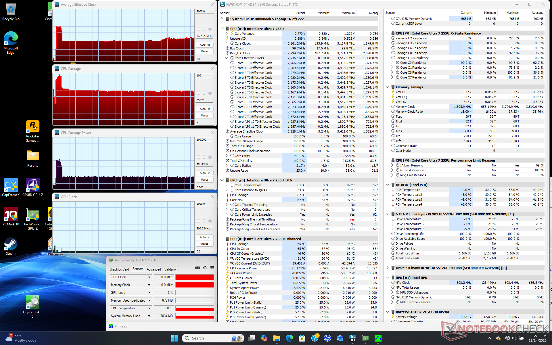 | HP Omnibook 5 16-af1037nr Ultra 7 255U, Graphics 4-Core iGPU (Arrow Lake), , IPS, 1920x1200, 16" | Lenovo IdeaPad Slim 5 16AKP10 Ryzen AI 5 330, Radeon 820M, Western Digital PC SN5000S SDEPMSJ-512G, IPS, 1920x1200, 16" | Dell 16 Plus Core Ultra 7 256V, Arc 140V, Samsung BM9C1 1024GB, IPS, 2560x1600, 16" | Asus Vivobook 16 M1606K Ryzen AI 7 350, Radeon 860M, Micron 2500 1TB MTFDKBA1T0QGN, IPS, 1920x1200, 16" | HP Pavilion 16-ag0057ng R5 8540U, Radeon 740M, SK hynix BC901 HFS001TEJ4X164N, IPS, 1920x1200, 16" | Acer Aspire 16 A16-51GM-77G2 Core 7 150U, GeForce RTX 2050 Mobile, WD PC SN740 SDDQNQD-1T00-1014, IPS, 1920x1200, 16" | |