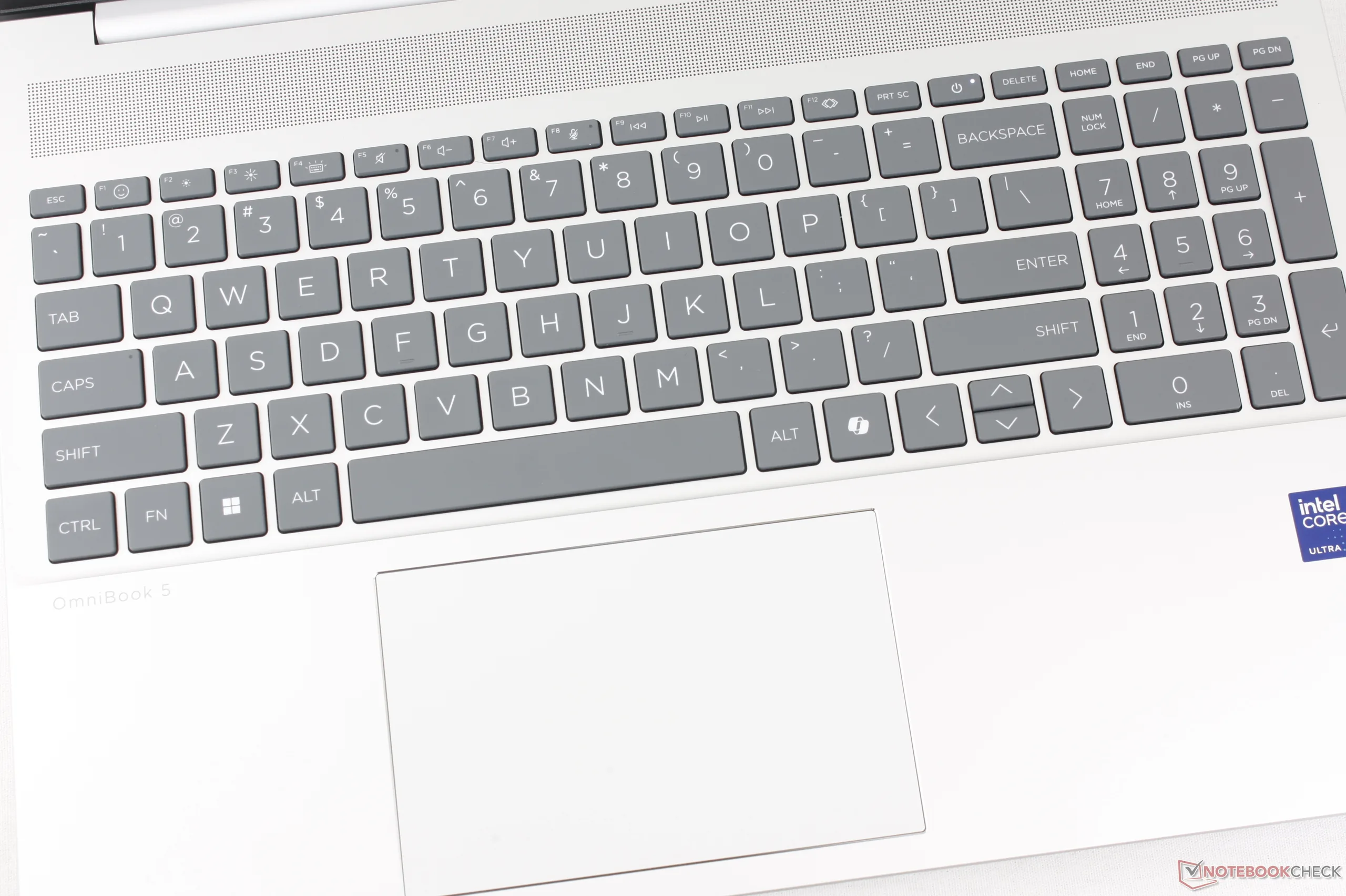 Die Tastatur ist geräumig und hat ein festeres Tastenfeedback als für diese Preisklasse erwartet. Sie fühlt sich insgesamt ähnlich an wie die Tastatur des aktuellen OmniBook 7 Aero 13.