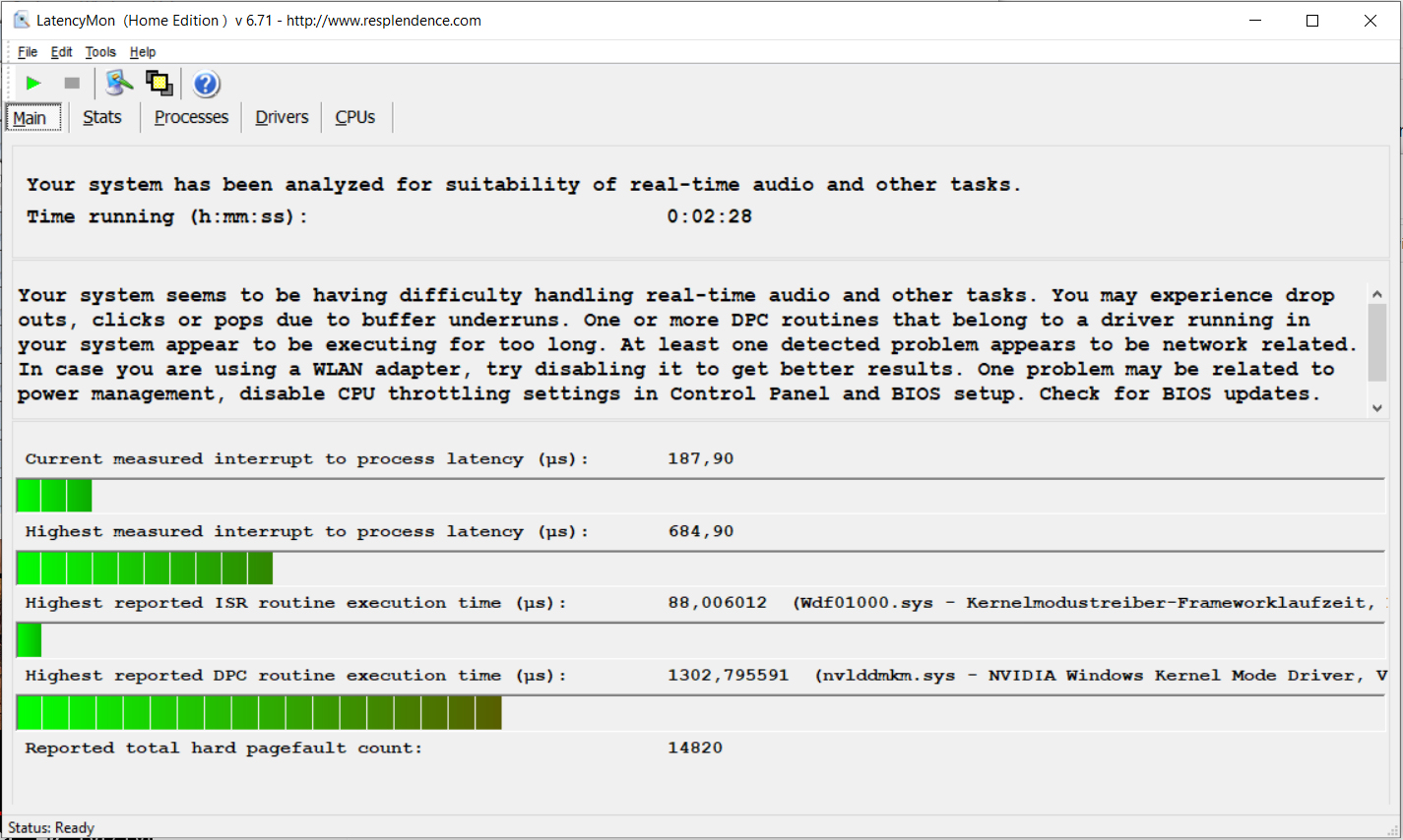 Unseren Stresstest (Prime95 und FurMark laufen für mindestens eine Stunde) bearbeiten Prozessor bzw. Grafikkern mit 2,8 GHz bzw. 1.320 MHz. Im Akkubetrieb liegen die Taktraten bei 2,4 bis 2,5 GHz (CPU) bzw. 700 bis 1.700 MHz (GPU). Der Stresstest stellt ein Extremszenario dar, welches so im Alltag nicht auftritt. Wir überprüfen mit diesem Test, ob das System auch bei voller Auslastung stabil läuft.