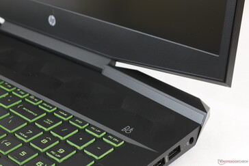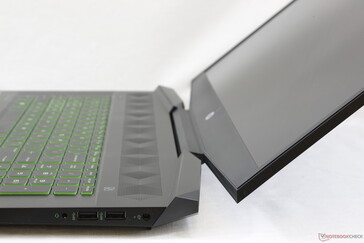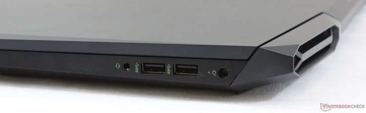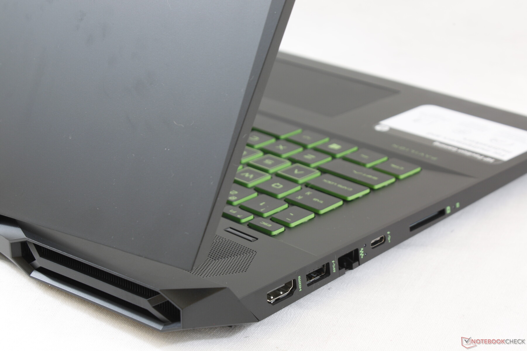 Für ein 17,3-Zoll-Gaming-Laptop ist die Auswahl an Anschlüssen zufriedenstellend. Wer allerdings Thunderbolt 3 und einen dedizierten mini DisplayPort erwartet, muss zur höherwertigen Omen-17-Serie greifen. Die Platzierung der Anschlüsse ist sehr gut und die einzelnen Ports sind besser zugänglich als beim Legion Y740 oder Asus Strix G GL731. Trotzdem liegen sie ein wenig zu dicht beieinander und können sich dadurch gegenseitig in die Quere kommen.