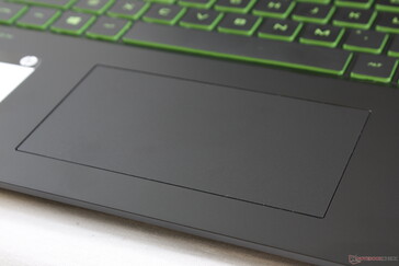 Angesichts des großen 17,3-Zoll-Gehäuses fällt das Clickpad mit gerade mal 11,5 x 6 cm ausgesprochen klein aus. Selbst das Spectre x360 15 und Dell XPS 15 mit 15,6-Zoll-Bildschirm haben mit 12 x 6 cm und 10,5 x 8,5 cm größere Touchpads. Der extrabreite Formfaktor ist insbesondere beim vertikalen Scrollen hinderlich. Glücklicherweise ist die Oberfläche bei mittlerer und hoher Fingergeschwindigkeit sehr angenehm glatt. Bewegt man den Finger langsamer, fühlt sich die Oberfläche etwas rauer an. Dies wirkt sich positiv auf die Präzision aus.