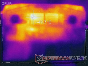 (-) Auf der Unterseite messen wir eine maximalen Wert von 49 °C (im Vergleich zum Durchschnitt von 43.3 °C).