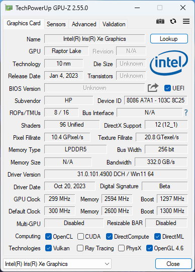 | HP Pavilion Plus 14-ew0153TU i7-1355U, Iris Xe G7 96EUs, OLED, 2880x1800, 14" | HP Pavilion Plus 14-ey0095cl R7 7840U, Radeon 780M, OLED, 2880x1800, 14" | Lenovo ThinkPad T14s G4 i7-1365U i7-1365U, Iris Xe G7 96EUs, IPS, 1920x1200, 14" | Acer Swift Go 14 SFG14-71 i5-1335U, Iris Xe G7 80EUs, OLED, 2880x1800, 14" | Asus ExpertBook B9 B9403CVA-KM0153X i7-1355U, Iris Xe G7 96EUs, OLED, 2880x1800, 14" | Huawei MateBook X Pro 2023 i7-1360P, Iris Xe G7 96EUs, IPS, 3120x2080, 14.2" | Durchschnittliche Intel Iris Xe Graphics G7 96EUs | Durchschnitt der Klasse Multimedia | |