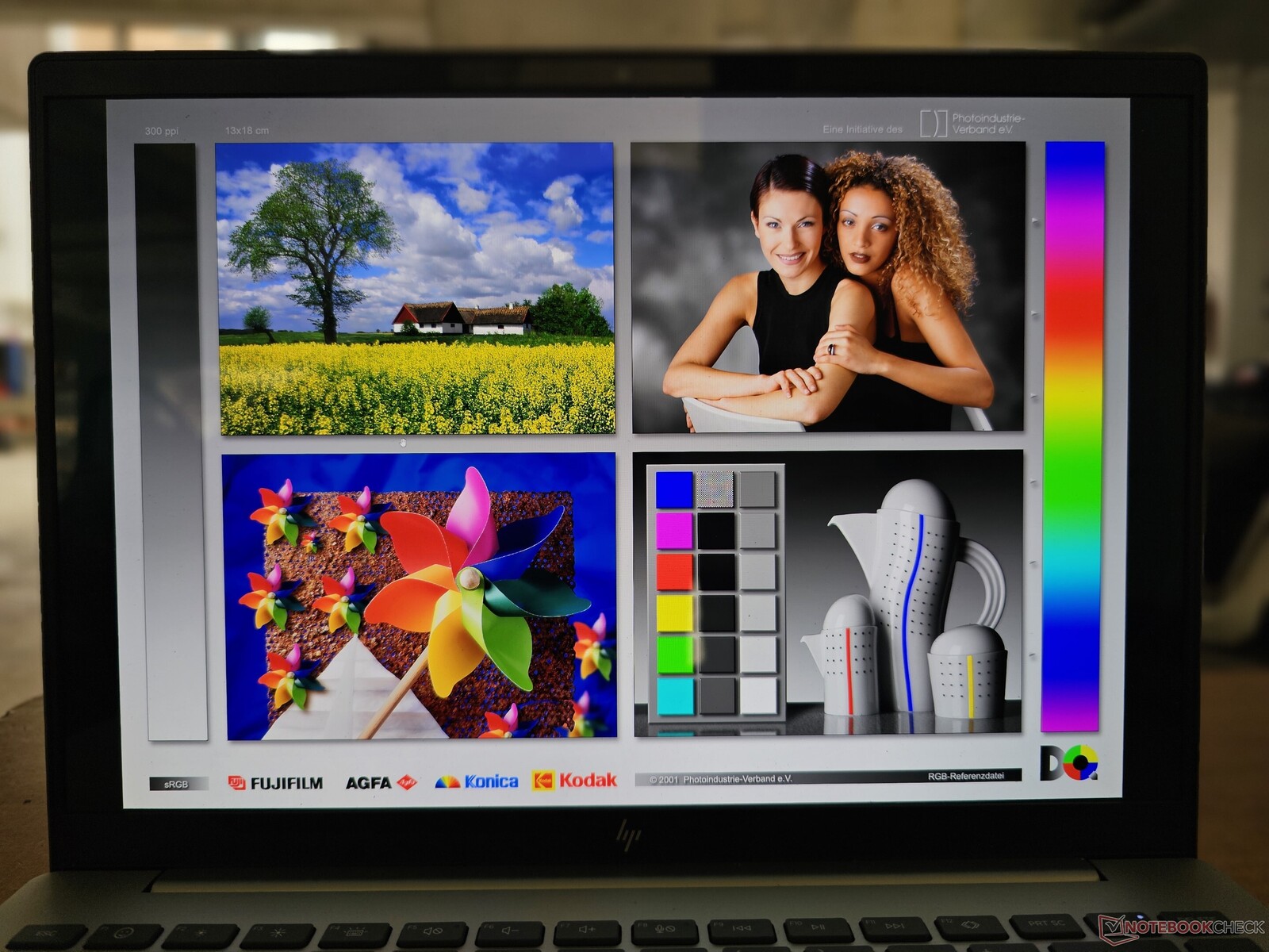 Unser Testdiagramm zeigt reichlich Details und angemessene Schärfe, jedoch weist die Farbgenauigkeit Raum für Verbesserungen auf. Eine manuelle, physische Webcam-Verschlussklappe trägt zur erhöhten Privatsphäre bei. Die mitgelieferten Apps HP Enhanced Camera und HP Enhanced Lighting bieten zusätzliche Funktionen für verbesserte Qualität bei Videokonferenzen.