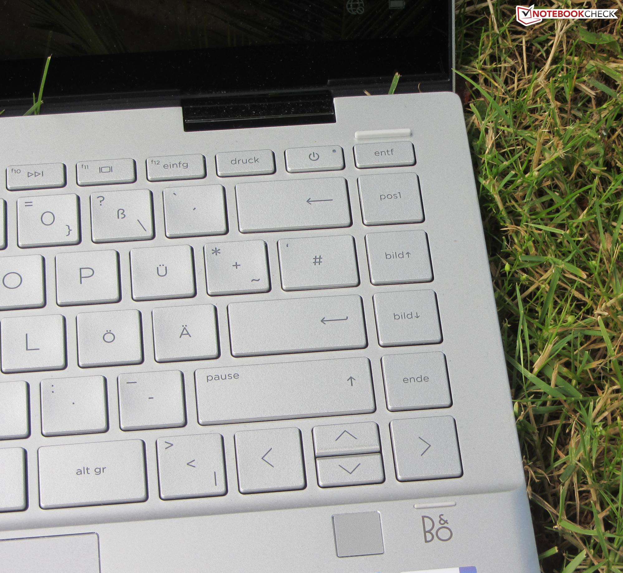 Die glatten Tasten der beleuchteten Chiclet-Tastatur verfügen über einen kurzen Hub und einen deutlichen Druckpunkt. Der Tastenwiderstand geht grundsätzlich in Ordnung, dürfte für unseren Geschmack aber etwas knackiger ausfallen. Während des Tippens gibt die Tastatur bestenfalls minimal nach. Als störend hat es sich nicht erwiesen. Die zweistufige Tastenbeleuchtung wird mittels einer Funktionstaste gesteuert. Alles in allem liefert HP hier eine alltagstaugliche Tastatur.
