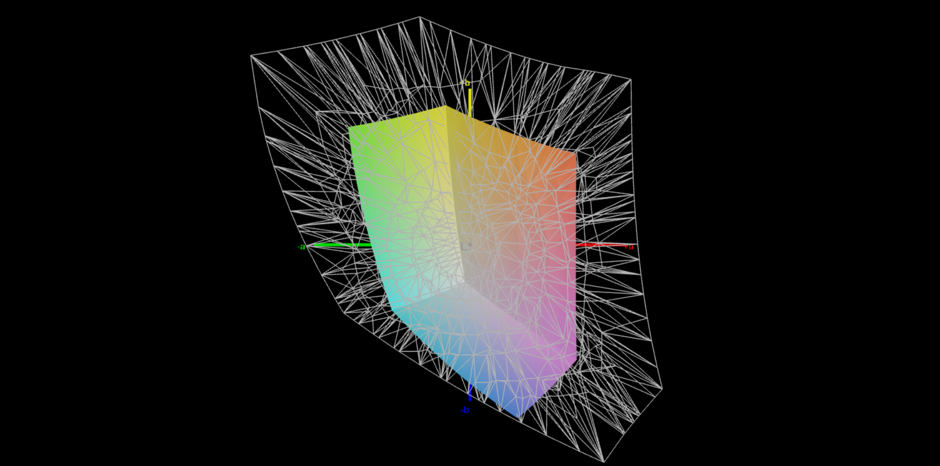 Der Bildschirm zeigt eine akzeptable Farbdarstellung, verpasst mit einer Abweichung von knapp 6 aber das Soll (DeltaE kleiner 3). Unter einem Blaustich leidet er nicht. Eine Kalibrierung könnte für Verbesserungen sorgen. Die Farbräume AdobeRGB (44 Prozent), sRGB (64 Prozent) und DCI-P3 (43 Prozent) kann das Display nicht abbilden.