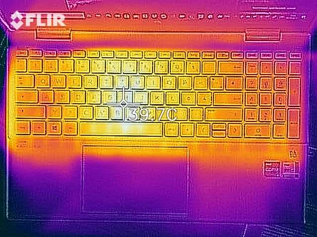 (+) Die Handballen und der Touchpad-Bereich erreichen maximal 33.7 °C und damit die typische Hauttemperatur und fühlen sich daher nicht heiß an.