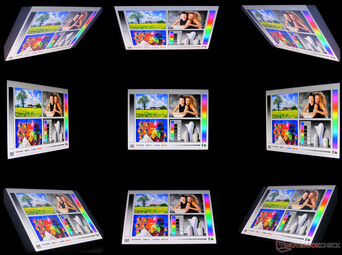 Der Bildschirm zeigt ab Werk eine akzeptable Farbdarstellung: Mit einer Abweichung von etwa 6,3 wird das Soll (DeltaE < 3) aber verfehlt. Eine Kalibrierung verringert den Wert auf 5,2 und sorgt für eine gleichmäßigere Darstellung der Graustufen. Die Farbräume DCI-P3, sRGB und AdobeRGB kann das Panel nicht abbilden - das gilt auch für die Bildschirme der meisten Konkurrenten. Eine bessere Farbdarstellung (sRGB) böte das alternativ erhältliche, hellere FHD-Panel.