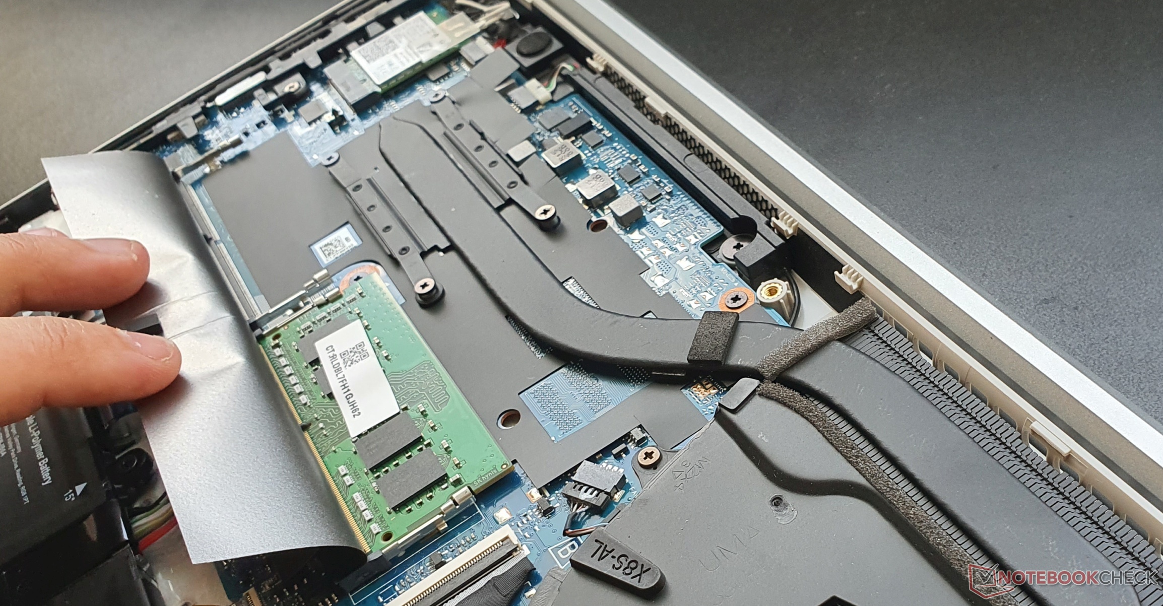 Der RAM kann in zwei Slots aufgerüstet werden (DDR4-3200), der Lüfter lässt sich reinigen und das ganze Kühlsystem auch einfach demontieren, um die Wärmeleitpaste zu wechseln. Der verschraubte Akku und auch die BIOS-Batterie sind zudem tauschbar.