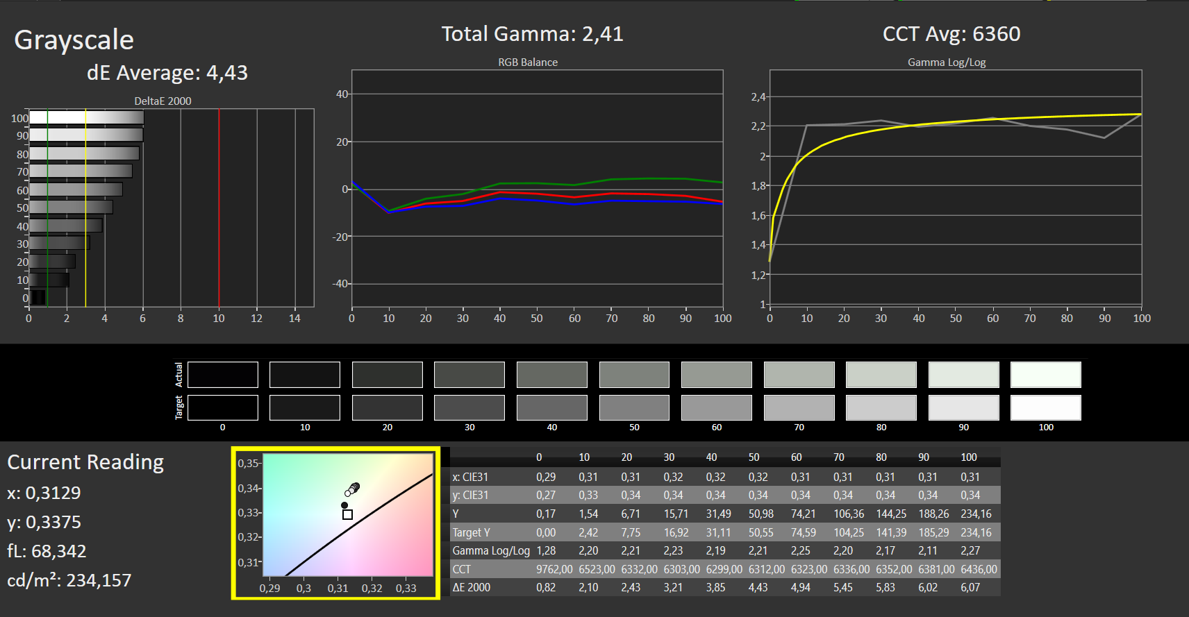 ΔE Greyscale Calman: 4.43 | ∀{0.09-98 Ø5}