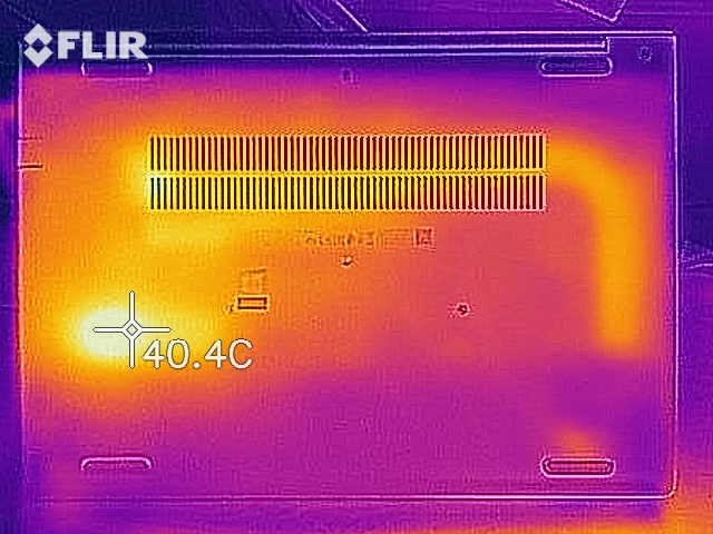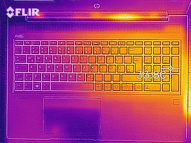 (+) Die Handballen und der Touchpad-Bereich erreichen maximal 32.7 °C und damit die typische Hauttemperatur und fühlen sich daher nicht heiß an.