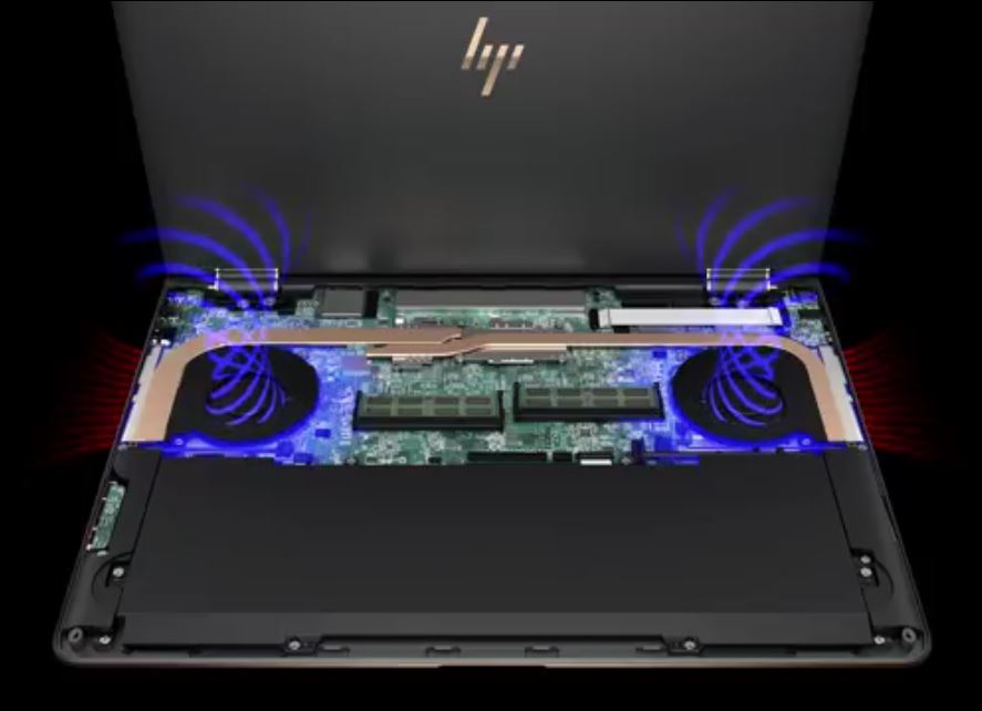 Das Gehäuse besteht komplett aus Aluminium, HP spricht davon, dass das Gehäuse mit CNC aus einem Block Metall gefertigt sei. Im Vergleich zum Vorgänger fallen das neue HP-Logo sowie die kleineren Displayränder auf: Rechts und links des Displays messen sie nur etwa 5 mm, dadurch ist das Gerät insgesamt auch etwas kleiner. In die andere Richtung geht es bei Dicke und Gewicht, das neue Modell ist etwa 2 mm dicker und 200 Gramm schwerer als das Spectre x360 15 2016. Dafür enthält das Gerät aber auch einen 23 % größeren 79 Wh Akku mit Schnellladefunktion sowie eine dedizierte GPU, die Nvidia GeForce 940MX (2GB GDDR5). Um das Gerät weiterhin adäquat kühlen zu können, verbaut HP einen weiteren Lüfter.