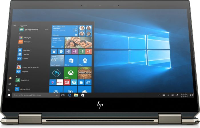 Das HP Spectre 13-ae001nf x360 ist ein 2-in-1-Laptop. Außer mit 16 GB RAM und wenigstens 1 TB Speicherkapazität sind die Geräte mit einem Intel Core i7 Prozessor ausgestattet. Mit dieser Spezifikation werden User bei ihren Alltagsaufgaben keine Probleme haben. Das 2-in-1-Gerät ist ziemlich schlank, stylisch und geschäftsmäßig. Kupferfarbene Akzente lassen das dunkle Gehäuse kleiner aussehen. Dieses Spectre verwendet die Farben anthrazitgrau und rosafarbiges bronze. Sollten diese beiden Farben nicht Ihren Geschmack treffen, so ist das x360 auch in silber (gebürstet und glänzend) erhältlich. Der 13,3-Zoll-Bildschirm ist eindeutig auf Gelenkscharniere montiert, so dass er hinter der Tastatur (Tablet-Modus) platziert werden oder ungewöhnliche Winkel einnehmen kann. In der Tat kann das Gerät im Tent- oder im Stand-Modus verwendet werden. In diesen drei Szenarios werden Windows 10 und Apps mit Fingern oder der Hilfe eines Stifts gesteuert. Der Stift muss separat gekauft werden und wird nicht standardmäßig mitgeliefert. Im klassischen Notebook-PC-Modus, nehmen natürlich Tastatur und Touchpad wieder ihren Dienst auf. In puncto Netzunabhängigkeit vermeldet HP eine Akkulaufzeit von bis zu 17 Stunden. Der 13-Zoll-Bildschirm bietet eine beeindruckende Auflösung von 3.840 x 2.160 Pixeln und liefert scharfe, klare und unglaublich lebendige Bilder. User können Videos in 4k-Auflösung bestens genießen, denn die hohe Auflösung sorgt auf einem derart kleine Bildschirm für ein unglaublich scharfes Bild. Details kommen beispielsweise bei mit hoher Auflösung aufgenommenen Fotos zum Tragen. Wollen User mehr aus dem Akku herausholen, können sie die Auflösung natürlich auf 2k oder Full-HD verringern. Außerdem kann der Bildschirm angemessen klar gestellt werden. Mit 340 cd/m² ist die Helligkeit höher als bei einem durchschnittlichen (normalen) Laptop. Die von Bang & Olufsen abgestimmten Lautsprecher liefern einen angemessenen Klang ohne offensichtliche Verzerrungen bei hohen Lautstärken. Für Laptop-Lautsprecher klingt die Balance angemessen. Sie können sich auch eine App zur Konfiguration des Sounds verschaffen. Allerdings befinden sich die Lautsprecher an der Unterseite des HP Specter x360. Das ist nie eine schöne Lage, weil der Sound verstellt klingen kann. Die 2-MP-Kamera im HP Specter x360 überrascht auch. Das Full-HD-Bild zeigt ziemlich viel Detail und übertrifft die Qualität einer einfachen Skype-Kamera. Entlang der Seitenkanten des Laptops befinden sich verschiedene Ports, beispielsweise ein superschneller Thunderbolt-3-Port für externe Bildschirme, den Stromadapter und andere Geräte. An den Seiten gibt es keine Lüfteröffnungen. Diese befinden sich nur an der Unterseite des 2-in-1-Gerätes. Hands-On-Artikel von Jagadisa RajarathnamAusstattung / Datenblatt