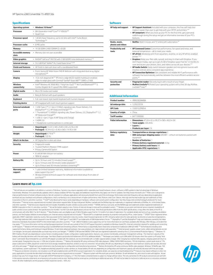 Das aktualisierte Spectre 15 x360 wird ab Dezember verfügbar sein, wobei der Grundpreis in den USA bei 1.390 US-Dollar liegt. Allerdings kann es laut HP sein, dass die leistungsstärkere Variante erst Anfang 2019 tatsächlich verfügbar sein wird.