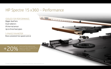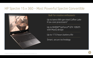 HPs Lösung für dieses Problem: Größere Lüfter und eine dritte Heat-Pipe. Ob das neue Kühlsystem ausreicht, das wird wohl nur ein Test zeigen. Unklar ist auch, ob das verbesserte Kühlsystem exklusiv für die Modelle mit i7-8750H und GTX 1050 Ti Max-Q ist, denn wie im Vorgänger wird es auch eine Modellvariante mit stromsparenden Komponenten geben. In diesem Fall wird das neue Spectre x360 15 auch mit der Kombination aus dem Whiskey-Lake-Prozessor Intel Core i7-8565U und der Nvidia GeForce MX150 angeboten.