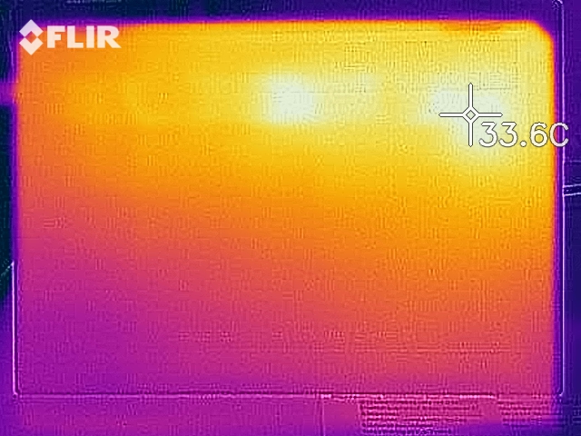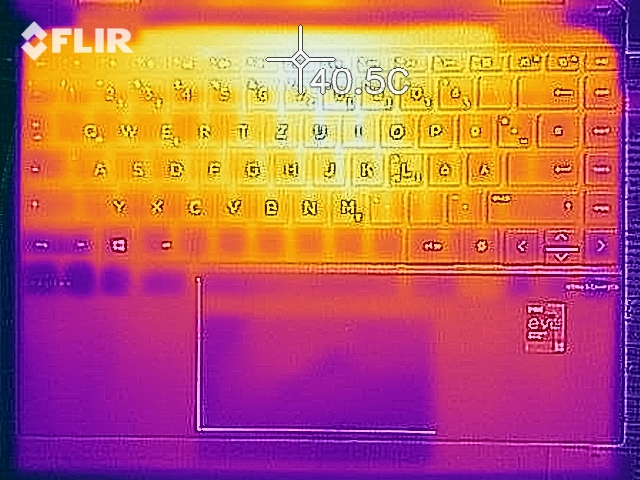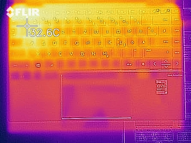 (+) Die Handballen und der Touchpad-Bereich sind mit gemessenen 27.8 °C kühler als die typische Hauttemperatur und fühlen sich dadurch kühl an.