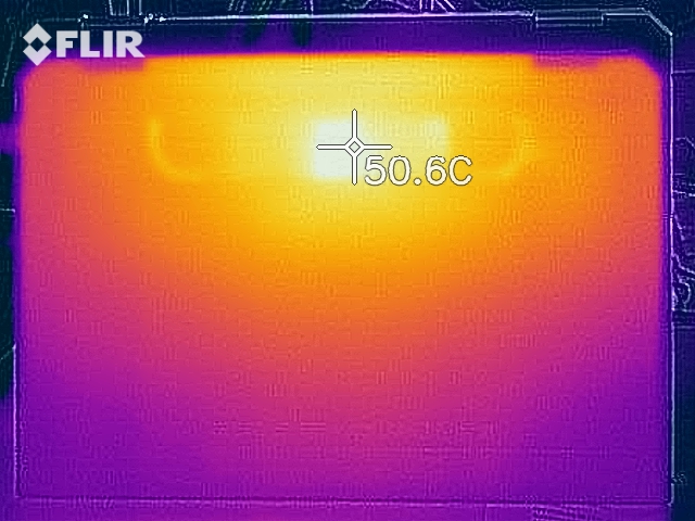 Das Convertible erwärmt sich nicht übermäßig stark. Während des Stresstests registrieren wir an zwei Messpunkten Temperaturen im unteren 40-Grad-Celsius-Bereich. Im Alltagsbetrieb bewegen sich die Werte im grünen Bereich.