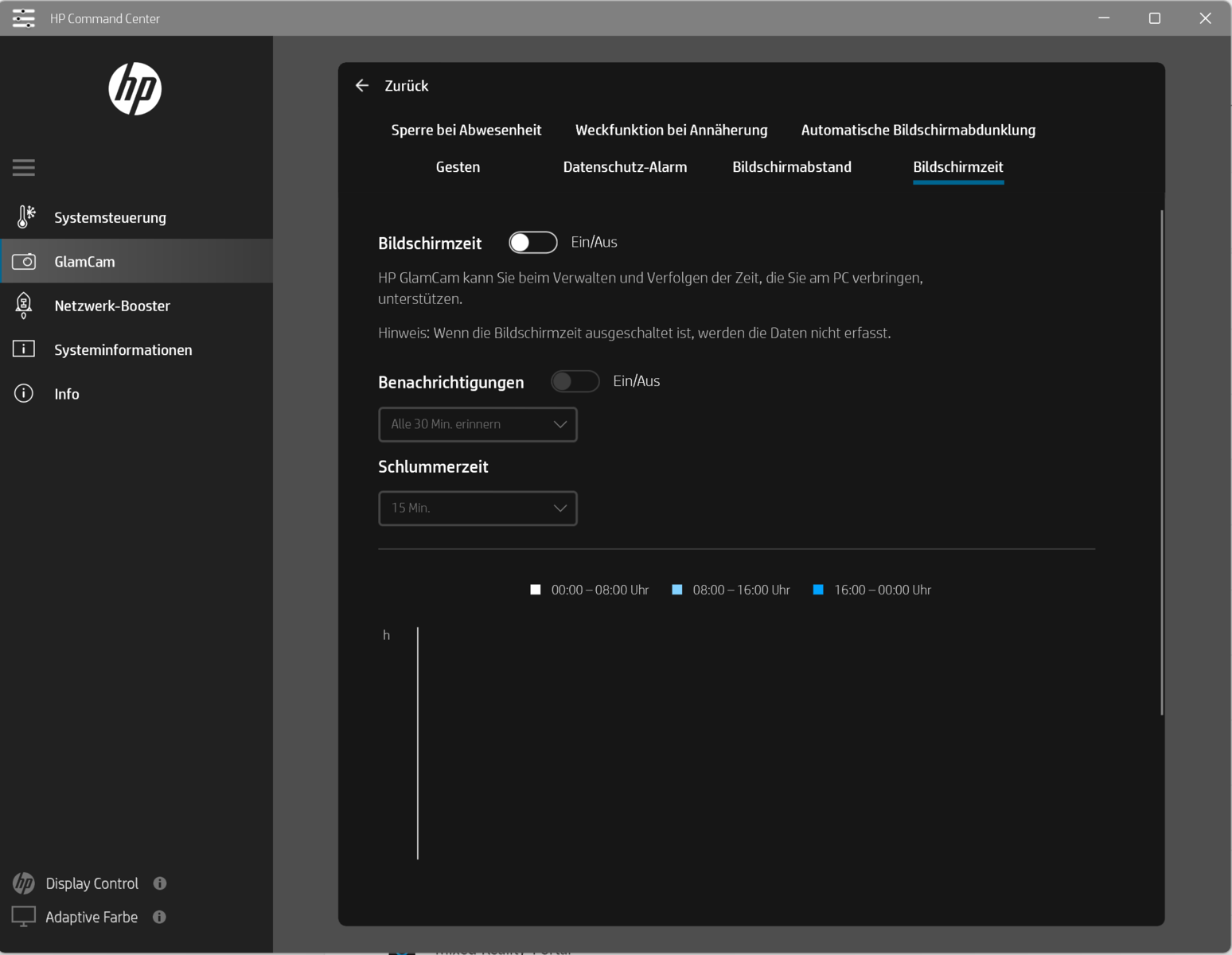 Softwareseitig bietet HP zusätzliche Funktionen, die unter der Bezeichnung "GlamCam" innerhalb der vorinstallierten Software "HP Command Center" zusammengefasst werden. Das gefilmte Subjekt soll ins beste Licht gerückt werden: So kann beispielsweise das Äußere geglättet werden, bei schlechten bzw. wechselnden Lichtverhältnissen wird eine Belichtungskorrektur durchgeführt.
