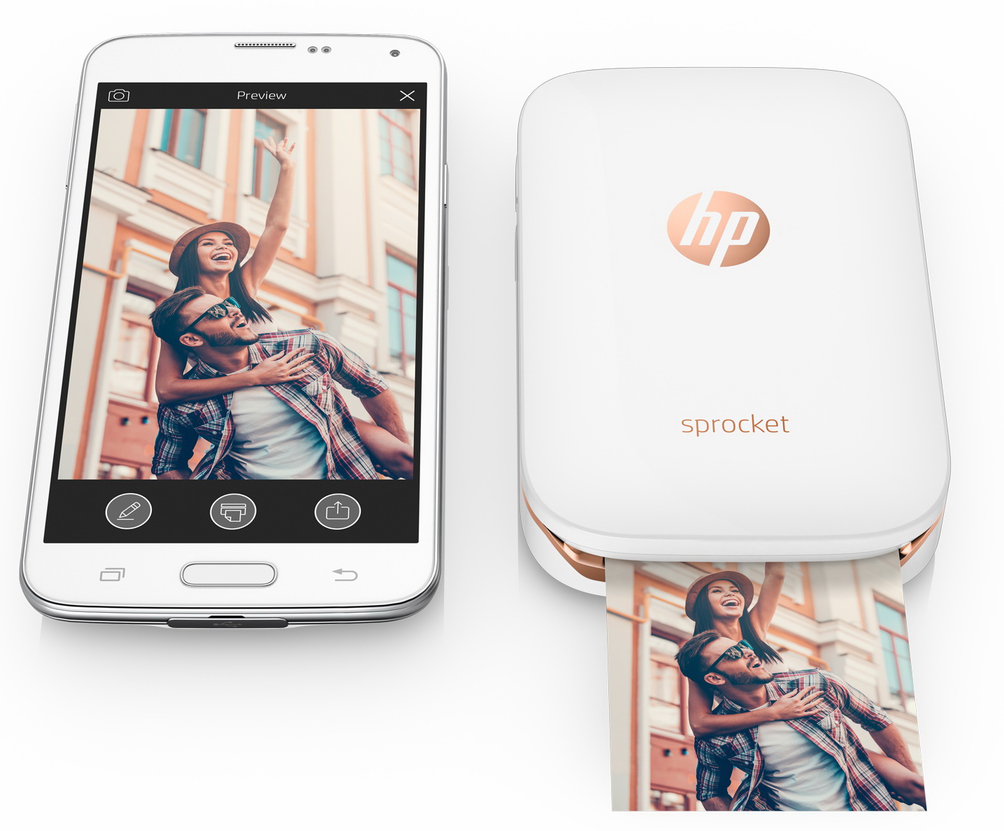HP macht mit seinem 172 Gramm leichten und nur 116 x 75 x 23 Millimeter messenden Fotodrucker Sprocket das Smartphone zur Sofortbildkamera. Wie HP in der Produktmeldung von heute bekann gab, ist der HP Sprocket ab sofort in Weiß mit Akzenten in Rosé-Gold (X7N07A) sowie in Schwarz mit Akzenten in Silber (X7N08A) verfügbar.