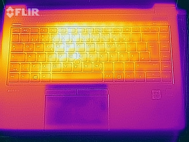 (+) Die Handballen und der Touchpad-Bereich sind mit gemessenen 29.9 °C kühler als die typische Hauttemperatur und fühlen sich dadurch kühl an.