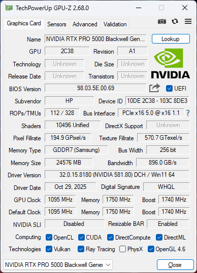 | HP ZBook Fury G1i 18 Ultra 9 285HX, RTX PRO 5000 Blackwell Generation Laptop | Dell Pro Max 18 Plus MB18250 Ultra 9 285HX, RTX PRO 5000 Blackwell Generation Laptop | Schenker Key 18 Pro M25 RTX 5090 Ultra 9 275HX, GeForce RTX 5090 Laptop | Lenovo ThinkPad P16 Gen 2 i7-14700HX, RTX 4000 Ada Generation Laptop | HP ZBook X G1i 16 Ultra 7 265H, RTX PRO 2000 Blackwell Generation Laptop | HP ZBook Studio 16 G11 Ultra 9 185H, RTX 3000 Ada Generation Laptop | |