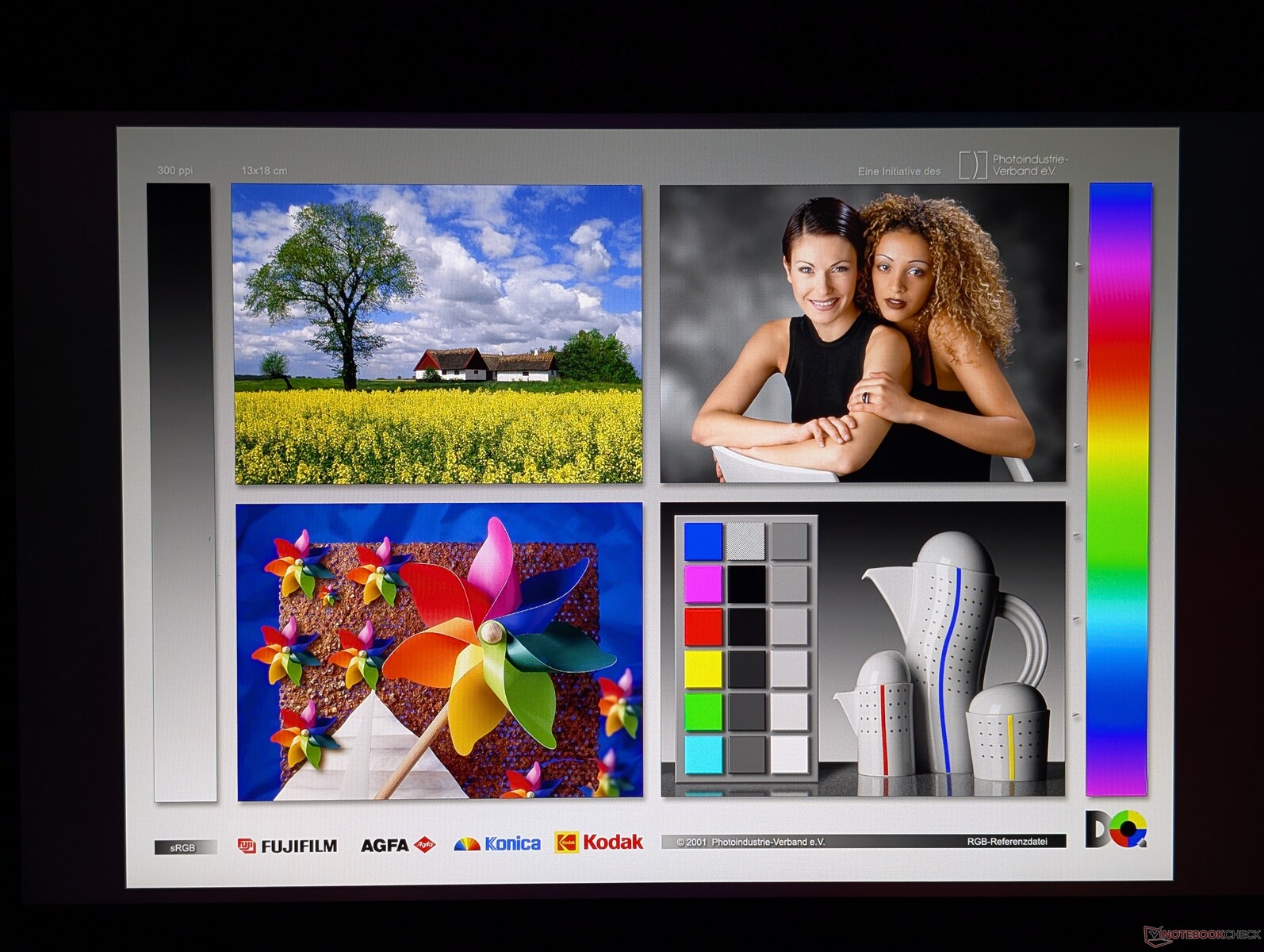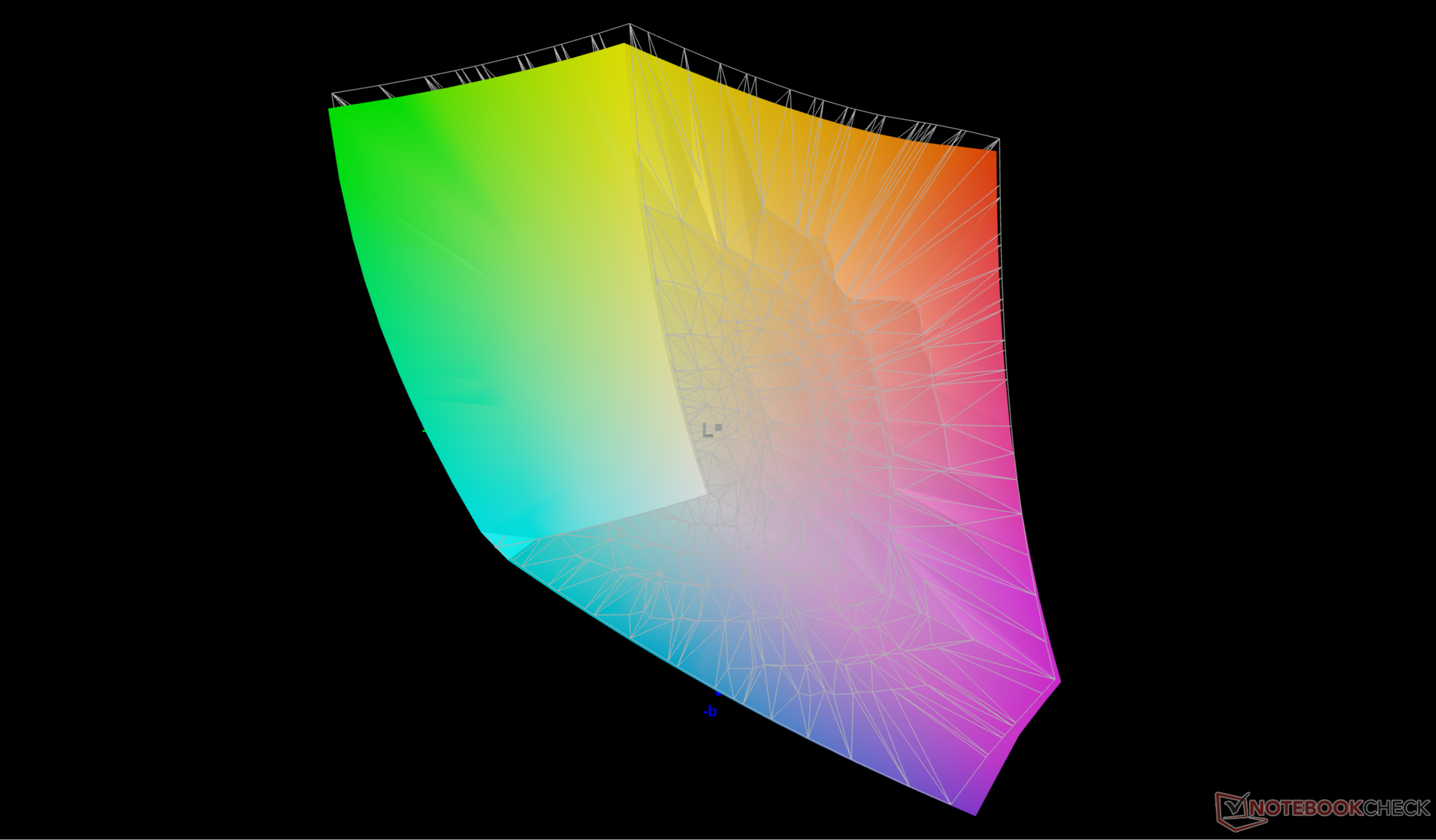 Die Farbtemperatur ist mit 7300 K auf der kühlen Seite ab Werk. Das Display ist ansonsten anständig auf den P3 Standard kalibriert.