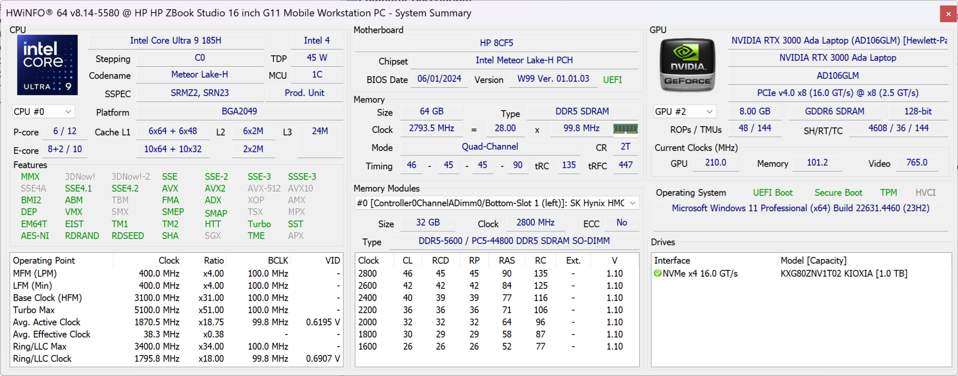 | HP ZBook Studio 16 G11 Intel Core Ultra 9 185H ⎘ NVIDIA RTX 3000 Ada Generation Laptop ⎘ 64 GB RAM, 1024 GB SSD | Amazon: 3.118,00 € Geizhals Suche | 1.8 kg | 19 mm | 16.00" 3840x2400 283 PPI IPS | |