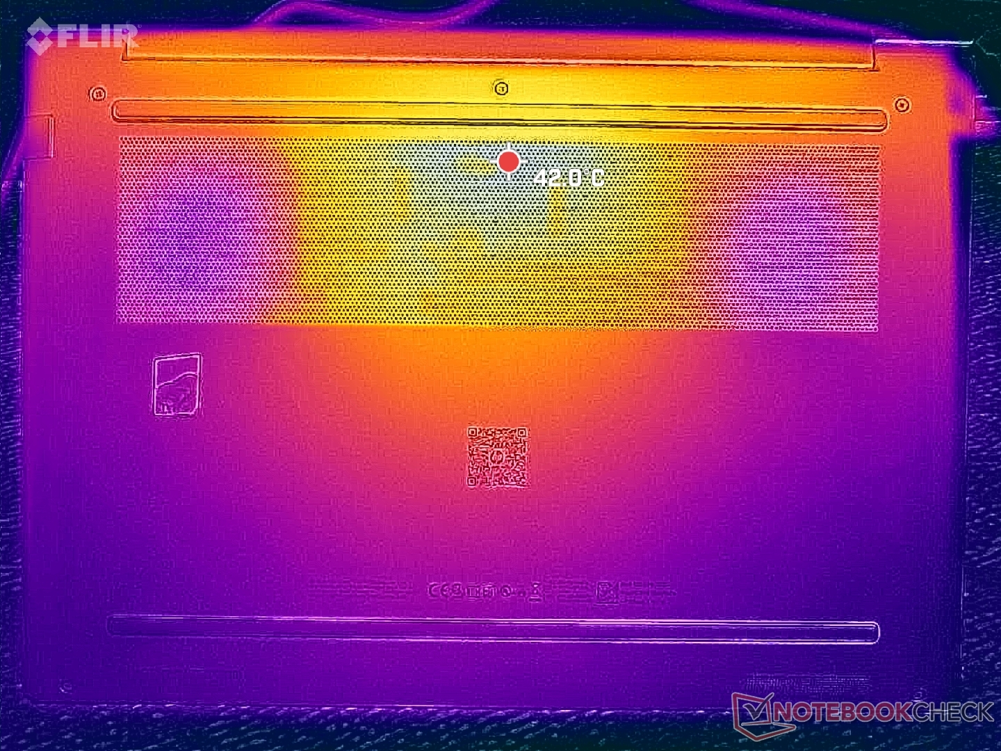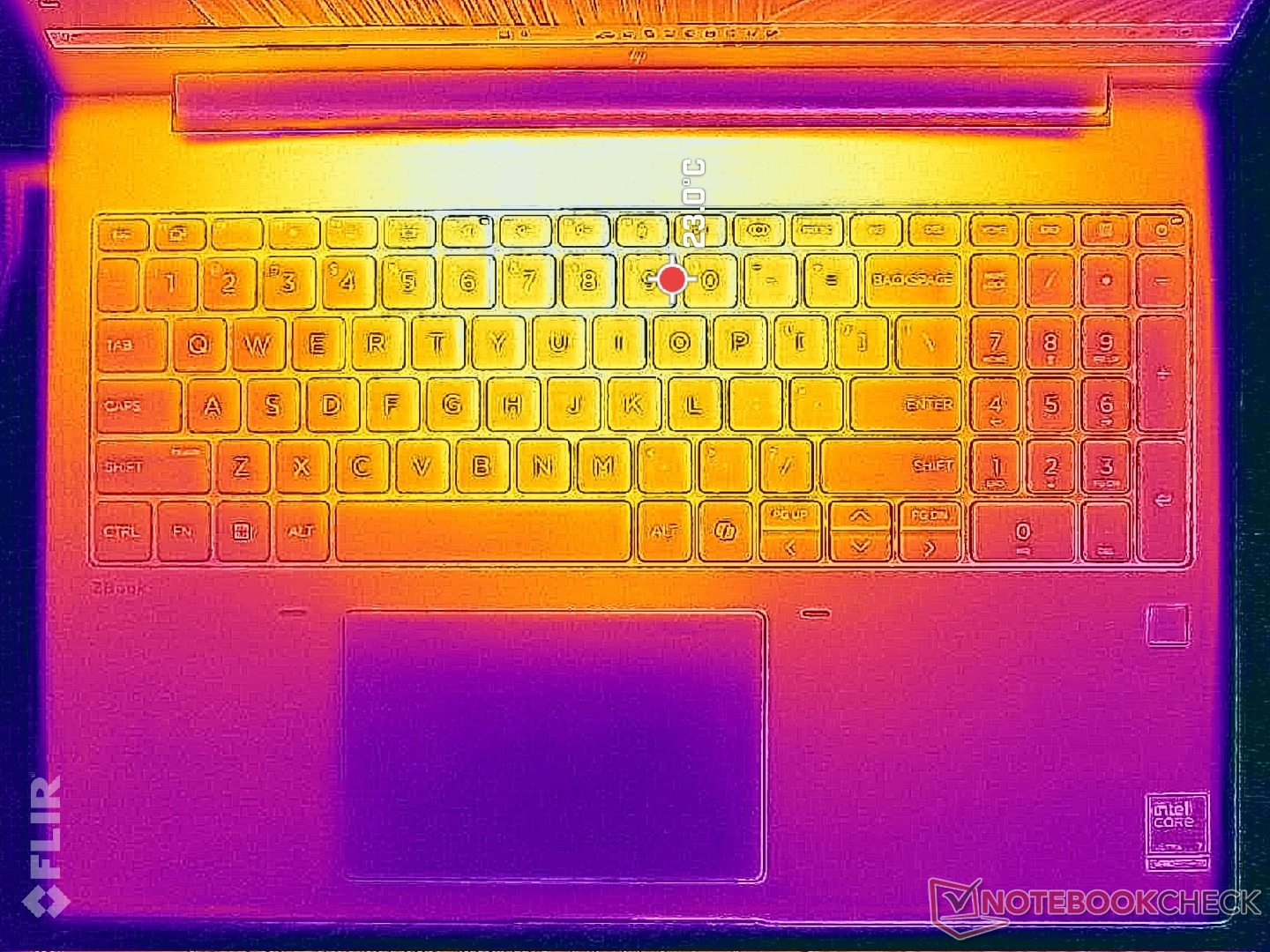 (+) Die Handballen und der Touchpad-Bereich sind mit gemessenen 24.2 °C kühler als die typische Hauttemperatur und fühlen sich dadurch kühl an.
