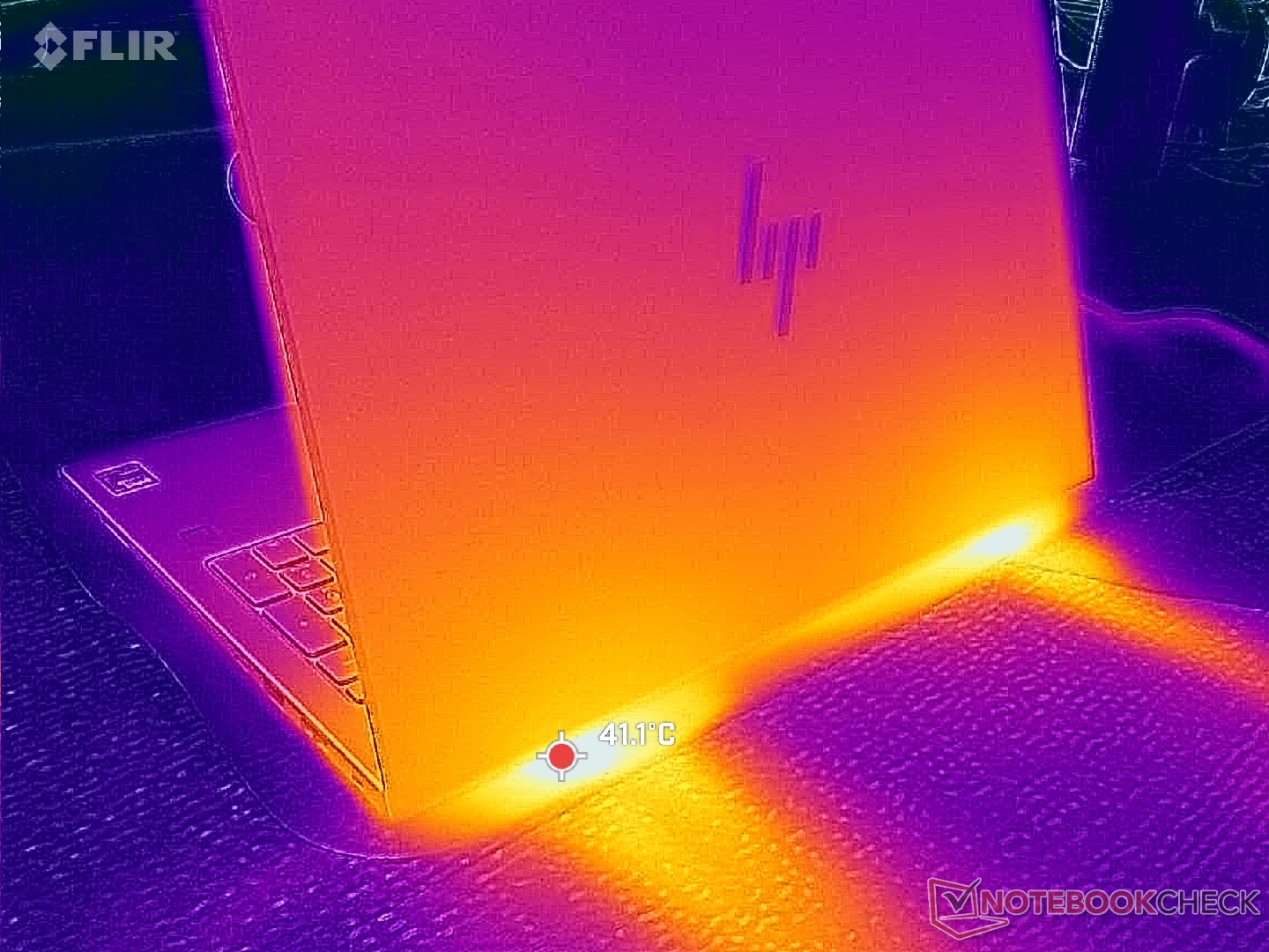 (+) Auf der Unterseite messen wir eine maximalen Wert von 39.4 °C (im Vergleich zum Durchschnitt von 41.1 °C).