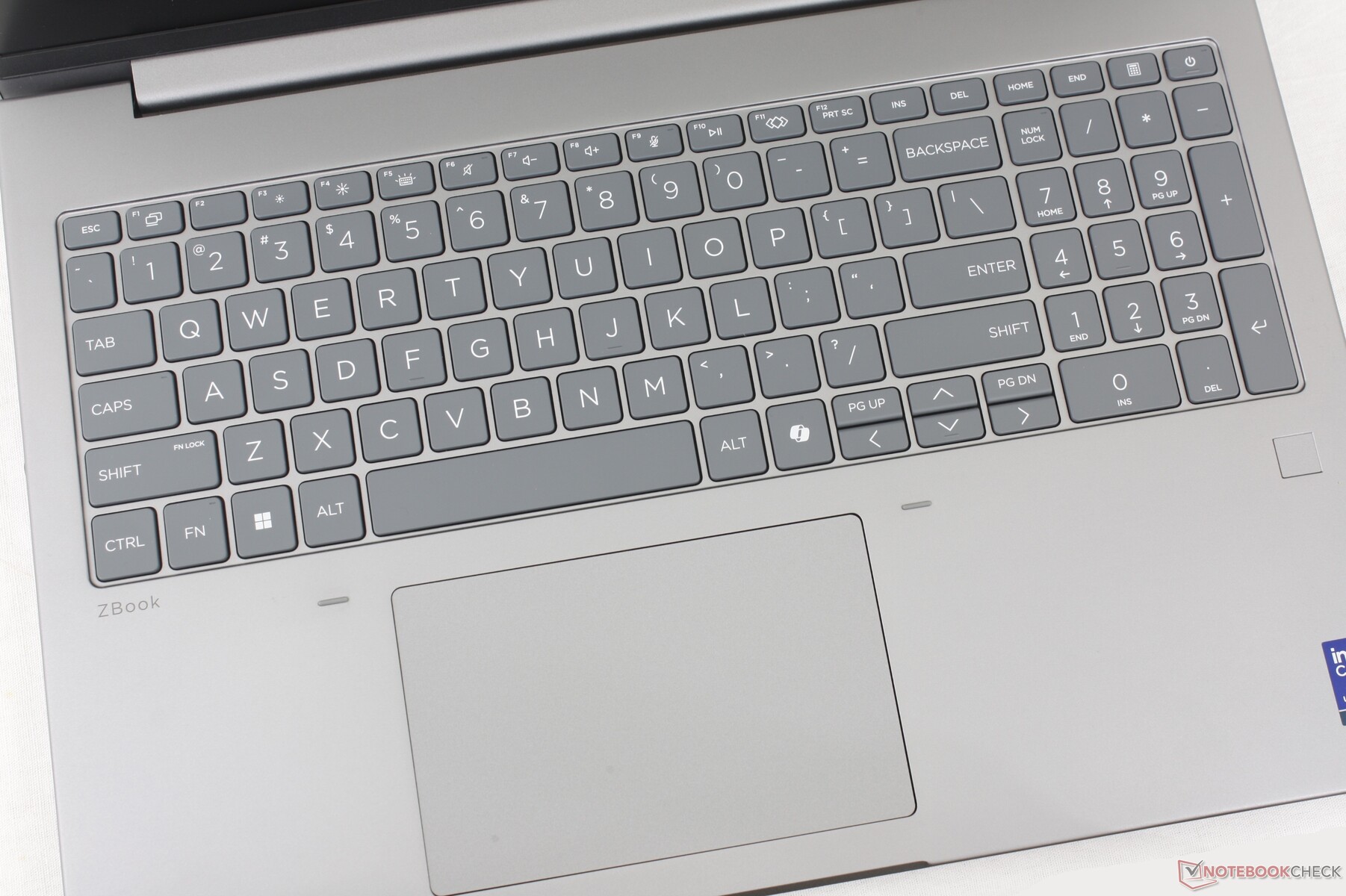Das Tipperlebnis ist ähnlich wie beim älteren ZBook Fury 16 G9, da sich das Tastaturlayout über die ZBook Generationen hinweg kaum verändert hat. Beim ZBook X G1i 16 hat HP jedoch die dedizierten Maustasten entfernt, ohne die Fläche zu vergrößern (12 x 8 cm gegenüber 12,4 x 8,3 cm beim ZBook Fury 16 G9).