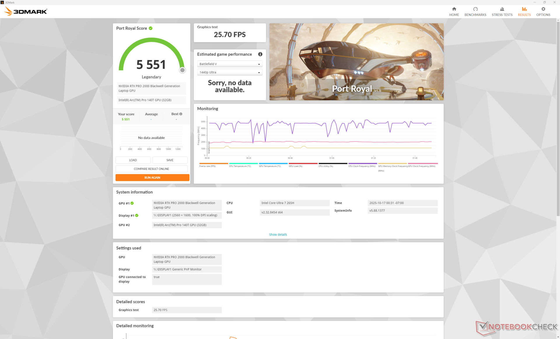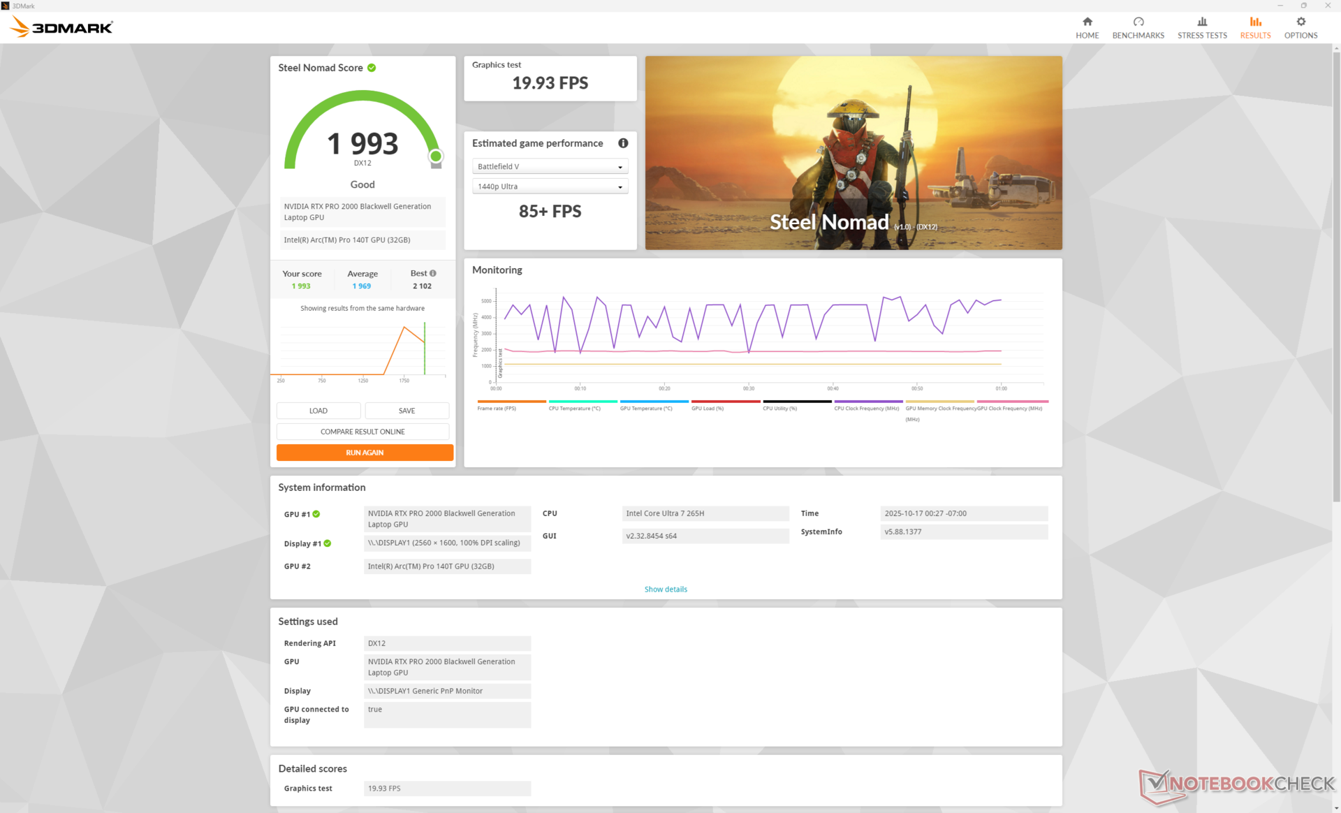 Die WLAN-Laufzeit ist mit 12,5 Stunden hervorragend und übertrifft damit das Precision 5690 der letzten Generation oder das ZBook Power 16 G11 A jeweils um einige Stunden.