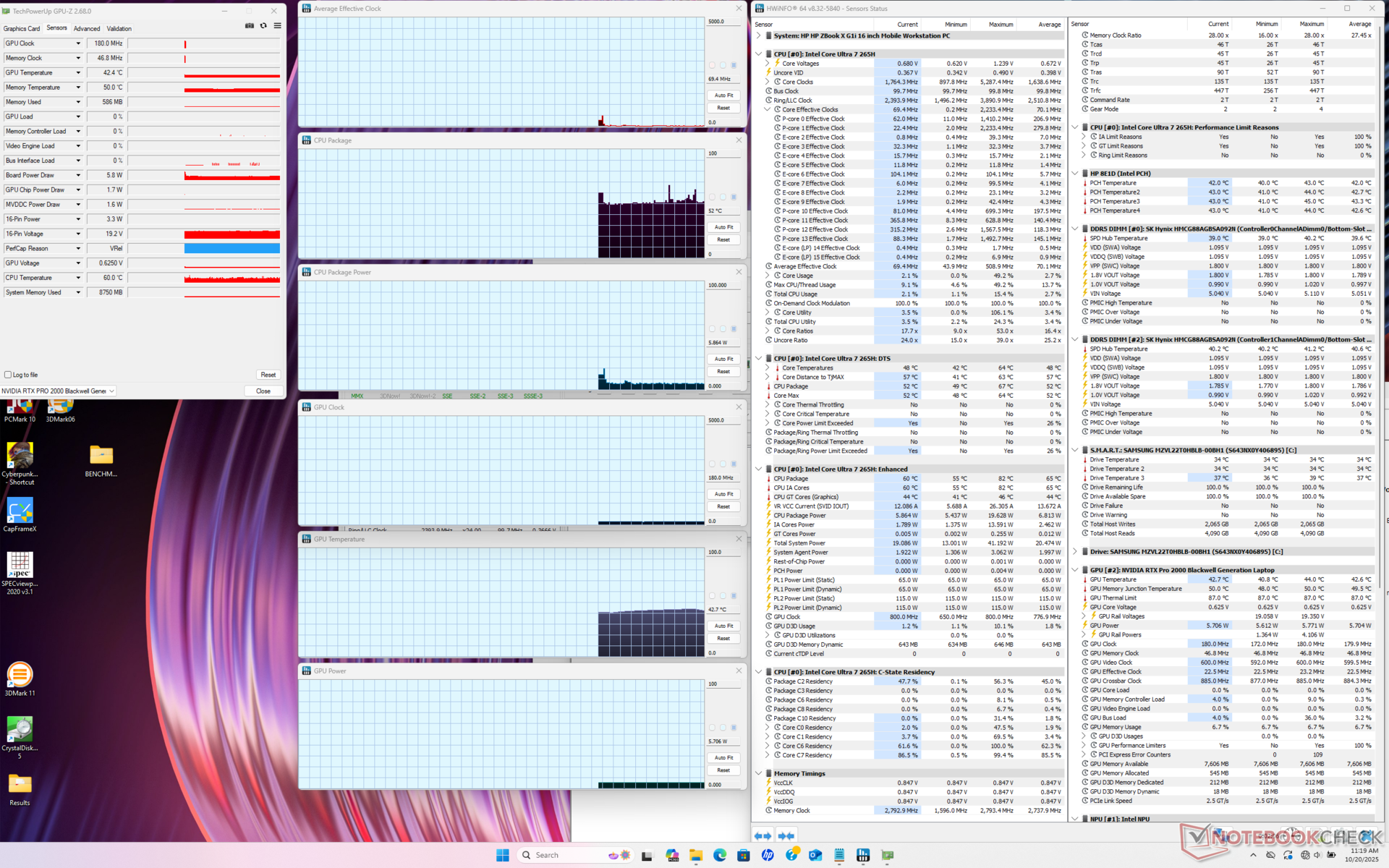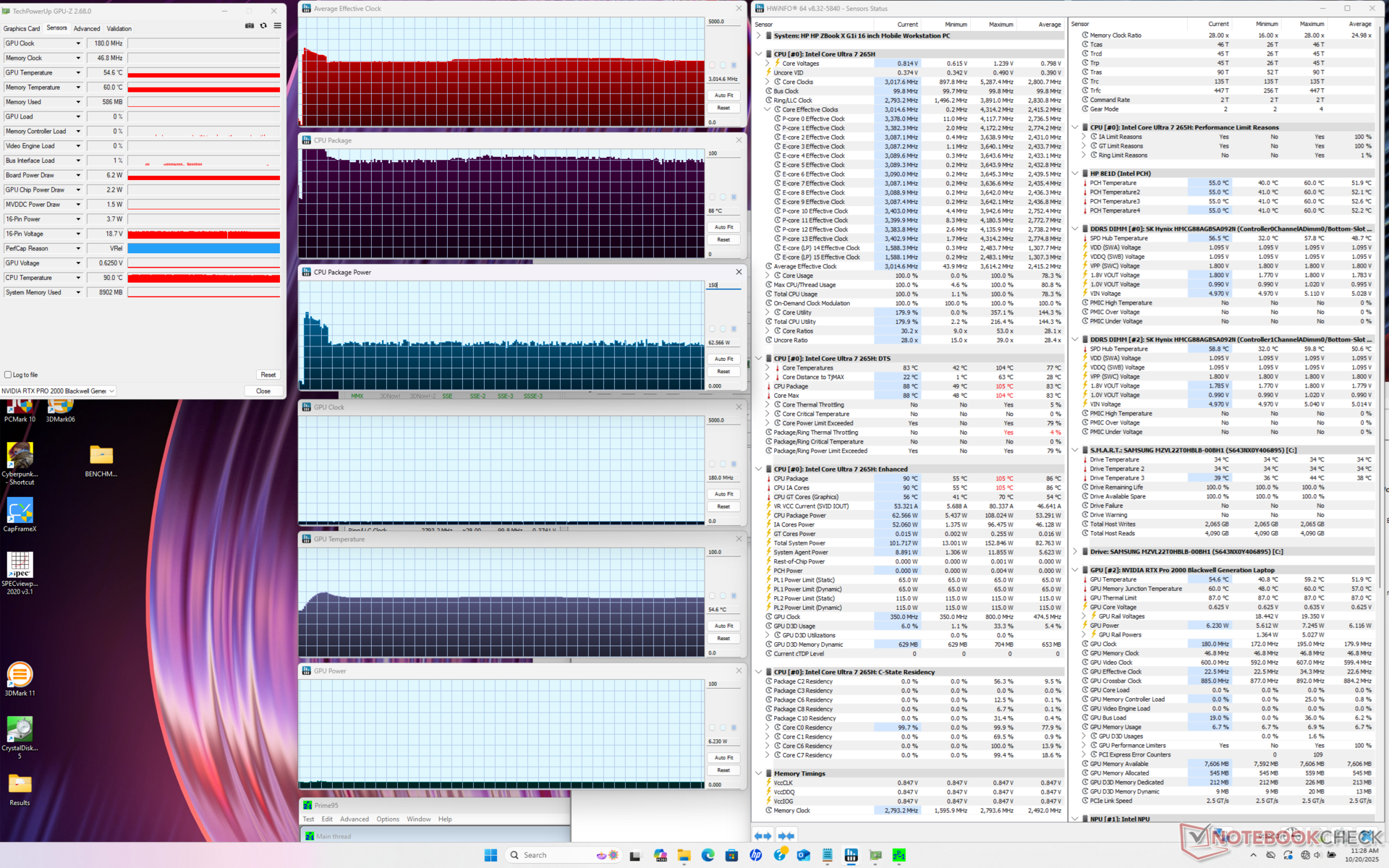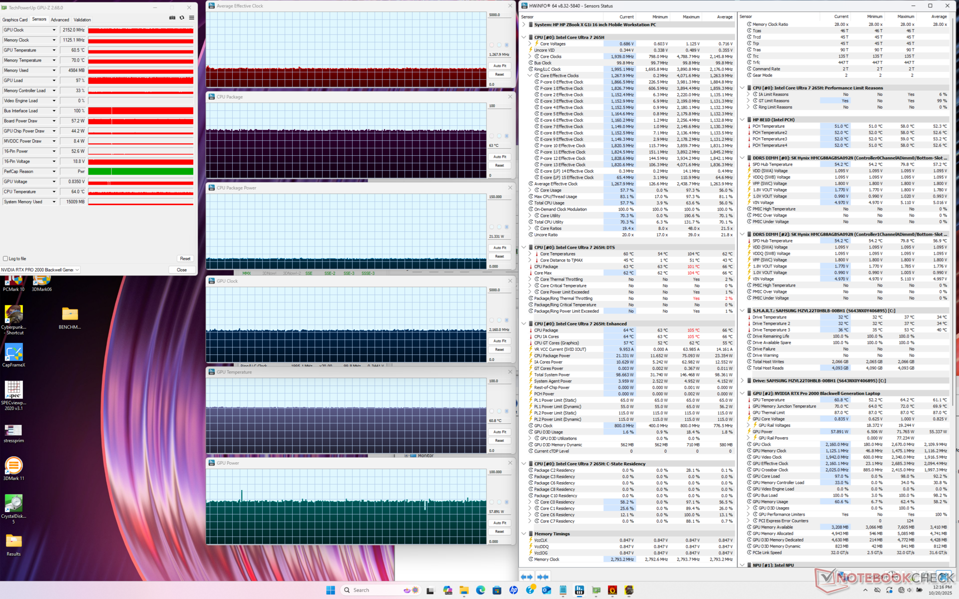 | HP ZBook X G1i 16 Ultra 7 265H, RTX PRO 2000 Blackwell Generation Laptop, Samsung PM9A1 MZVL22T0HBLB, IPS, 2560x1600, 16" | HP ZBook Power 16 G11 A R7 8845HS, RTX 2000 Ada Generation Laptop, Samsung PM9A1 MZVL22T0HBLB, IPS, 2560x1600, 16" | HP ZBook Studio 16 G11 Ultra 9 185H, RTX 3000 Ada Generation Laptop, Kioxia XG8 KXG80ZNV1T02, IPS, 3840x2400, 16" | Lenovo ThinkPad P16 Gen 2 i7-14700HX, RTX 4000 Ada Generation Laptop, SK hynix PC801 HFS001TEJ9X162N, IPS, 2560x1600, 16" | Dell Pro Max 16 Plus Ultra 9 285HX, RTX PRO 5000 Blackwell Generation Laptop, SK hynix PCB01 HFS001TFM9X186N, OLED, 3840x2400, 16" | Dell Precision 5690 Ultra 9 185H, RTX 5000 Ada Generation Laptop, 2x Samsung PM9A1 1TB (RAID 0), OLED, 3840x2400, 16" | |