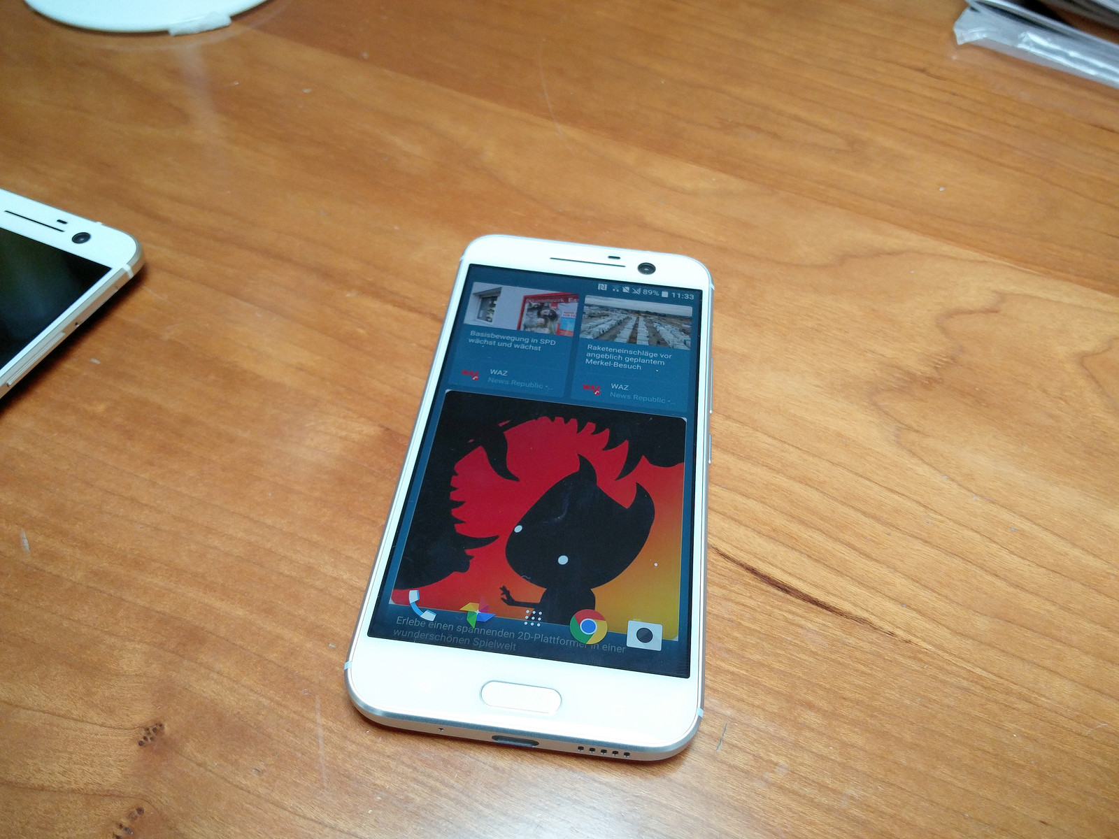 Der Bildschirm löst mit 2.560 x 1.440 Pixel auf. Die Pixeldichte liegt damit bei 564 PPI. Laut HTC deckt der Bildschirm 92% des NTSC-Farbraums ab. Es handelt sich um einen LCD-Bildschirm, den HTC als "Super LCD 5" bezeichnet und der die Vorteile von LCD und AMOLED-Displays verbinden soll. Die Schwarzwerte sollen also besser sein als bei herkömmlichen LCDs, dafür gibt es dennoch hohe Leuchtkraft und strahlende Farben. Unser subjektiver Eindruck ist tatsächlich sehr gut: Die Farben wirken sehr kräftig und schwarze Flächen tief.