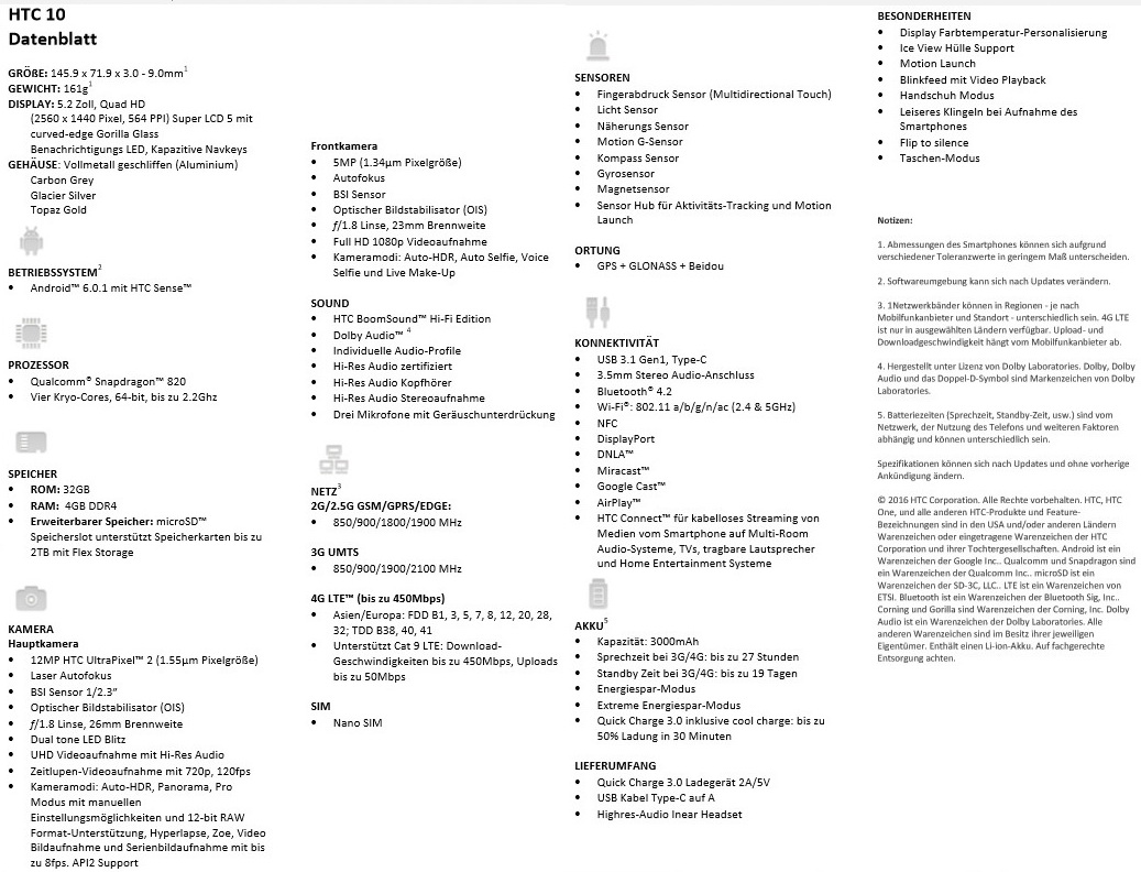 Wie wir berichteten, kommt das HTC 10 mit einer Reihe spannender Neuigkeiten daher. So bezeichnen die Experten von DxO beispielsweise die 12-MP-Hauptkamera mit 1,55-µm-Pixeln, f/1.8, 26 Millimetern Brennweite, Laser-Autofokus und optischem Bildstabilisator (OIS) des HTC 10 als tolle Allround-Kamera. Aktuell teilt sich das HTC 10 mit dem Samsung Galaxy S7 edge den 1. Platz im Ranking der besten Smartphones im DxOMark. Zudem unterstützt das HTC 10 als eines der ersten Smartphones auch die superschnelle Turbo-Aufladetechnik Quick Charge 3.0 von Qualcomm. Das sorgt für extrem schnelle Ladezeiten.