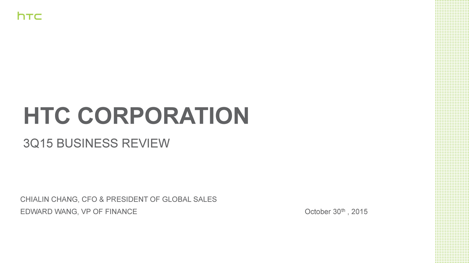 Im Rahmen des Investor-Calls gab HTC zudem bekannt, dass der taiwanische Hersteller künftig keine Ausblicke zur Geschäftsentwicklung mehr abgeben wird. Eine Prognose für das 4. Quartal 2015 lehnte HTC ab. "Angesichts der Dynamik dieses Geschäfts haben wir entschieden, keine detaillierte Finanzprognose abzugeben", sagte CFO und Verkaufschef Chialin Chang. Zuvor hatte HTC Mitte August 2015 angekündigt, insgesamt 15 Prozent seiner Mitarbeiter im Zuge der Umstrukturierung des Unternehmens zu entlassen.