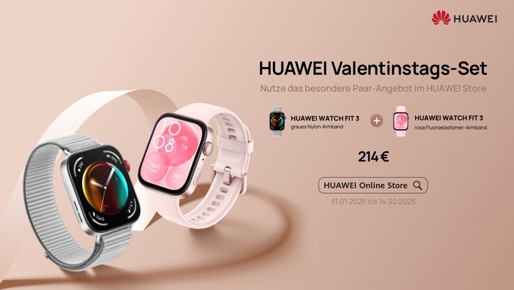 Für sportliche Power-Couples bietet sich alternativ das Valentinstag-Bundle der HUAWEI WATCH FIT 3 an. Bei der sportlichen Smartwatch mit umfassenden Gesundheitsmanagement und Fitness-Management, 1,82 Zoll riesigem AMOLED im schlanken Gehäuse sowie langer Akkulaufzeit haben Kaufinteressenten die Wahl.