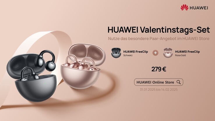 Zum Valentinstag verkauft HUAWEI die FreeClip im Zweier-Set in Schwarz und Rosé Gold für zusammen nur 279 Euro, was zu einer deutlichen Ersparnis gegenüber dem Einzelkauf für je 179 Euro führt.