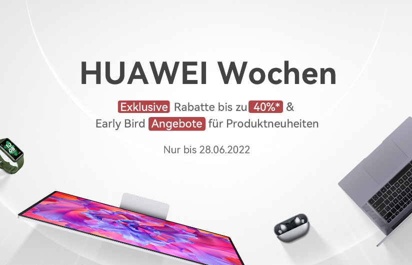 Im Zeitraum 10. Juni bis 28. Juni 2022 können im Rahmen der HUAWEI Wochen besonders attraktive Schnäppchen gemacht werden, insbesondere unter den MateBook-Notebooks. So gibt es auf alle Laptops mit Intel Core i7 Prozessor im Wert von über 800 Euro ganze 100 Euro zusätzlichen Rabatt.