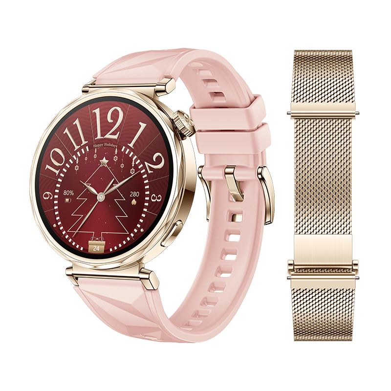 - WATCH GT 5 41mm Weihnachtsedition Goldenes Edelstahlgehäuse mit rosa Fluorelastomer-Armband und goldenem Milanaise-Armband für 309 Euro