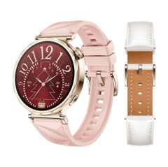 - WATCH GT 5 41mm Weihnachtsedition Goldenes Edelstahlgehäuse mit rosa Fluorelastomer-Armband und weißem Lederarmband für 269 Euro