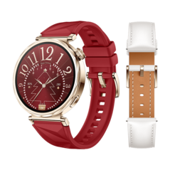 - WATCH GT 5 41mm Weihnachtsedition Goldenes Edelstahlgehäuse mit rotem Fluorelastomer-Armband und weißem Lederarmband für 269 Euro