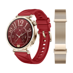 - WATCH GT 5 41mm Weihnachtsedition Goldenes Edelstahlgehäuse mit rotem Fluorelastomer-Armband und goldenem Milanaise-Armband für 309 Euro