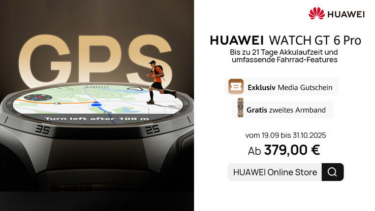 Aktuell bietet HUAWEI die brandneue WATCH GT 6 Series mit Rabatt und Geschenk an. Wer bei seiner Bestellung den bis Ende Oktober 2025 gültigen Gutscheincode A40GT6 einlöst, spart direkt bei HUAWEI satte 40 Euro auf die HUAWEI WATCH GT 6 und GT 6 Pro. Zudem gibt es ein zweites Armband gratis dazu.