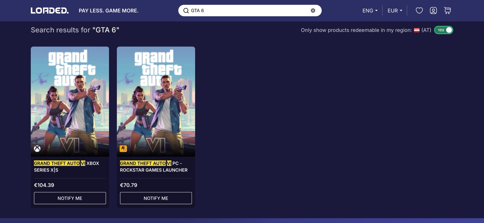 Die bisher nicht angekündigte PC-Version des Spiels wurde kurze Zeit für 70,79 Euro gelistet, dieser Eintrag wurde mittlerweile aber entfernt. Die Version für die Xbox Series X|S (ca. 340 Euro auf Amazon) ist im Onlineshop nach wie vor für 104,39 Euro zu finden. Dass der Händler Insider-Informationen zum Launch-Preis von GTA 6 hat, ist eher unwahrscheinlich, sodass es sich dabei um Platzhalter-Preise handeln dürfte. Loaded ist ein Händler, der Download-Keys für Spiele verkauft, und das in der Regel nicht zum Listenpreis der jeweiligen Titel.